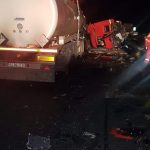 Potrivit autorităților, este vorba despre un autotren încărcat cu fier vechi și o cisternă care transporta bitum fierbinte. Pompierii au fost chemați de urgență pentru că exista riscul de scurgeri pe șosea.