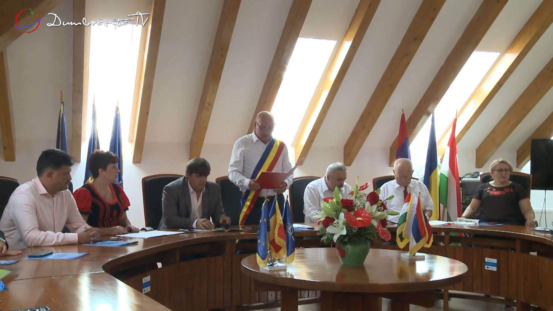 Ca în fiecare duminică din cadrul sărbătorii Zilele Dumbrăviței, și de data aceasta s-a întrunit ședința festivă a Consiliului Local. Pe lângă o parte dintre aleșii locali, la eveniment au participat și numeroși invitați din localitățile înfrățite, dar și Consiliul Județean Timiș a fost bine reprezentat prin Adrian Negoița, Roxana-Andreea Manasia și Florica Lupuț.