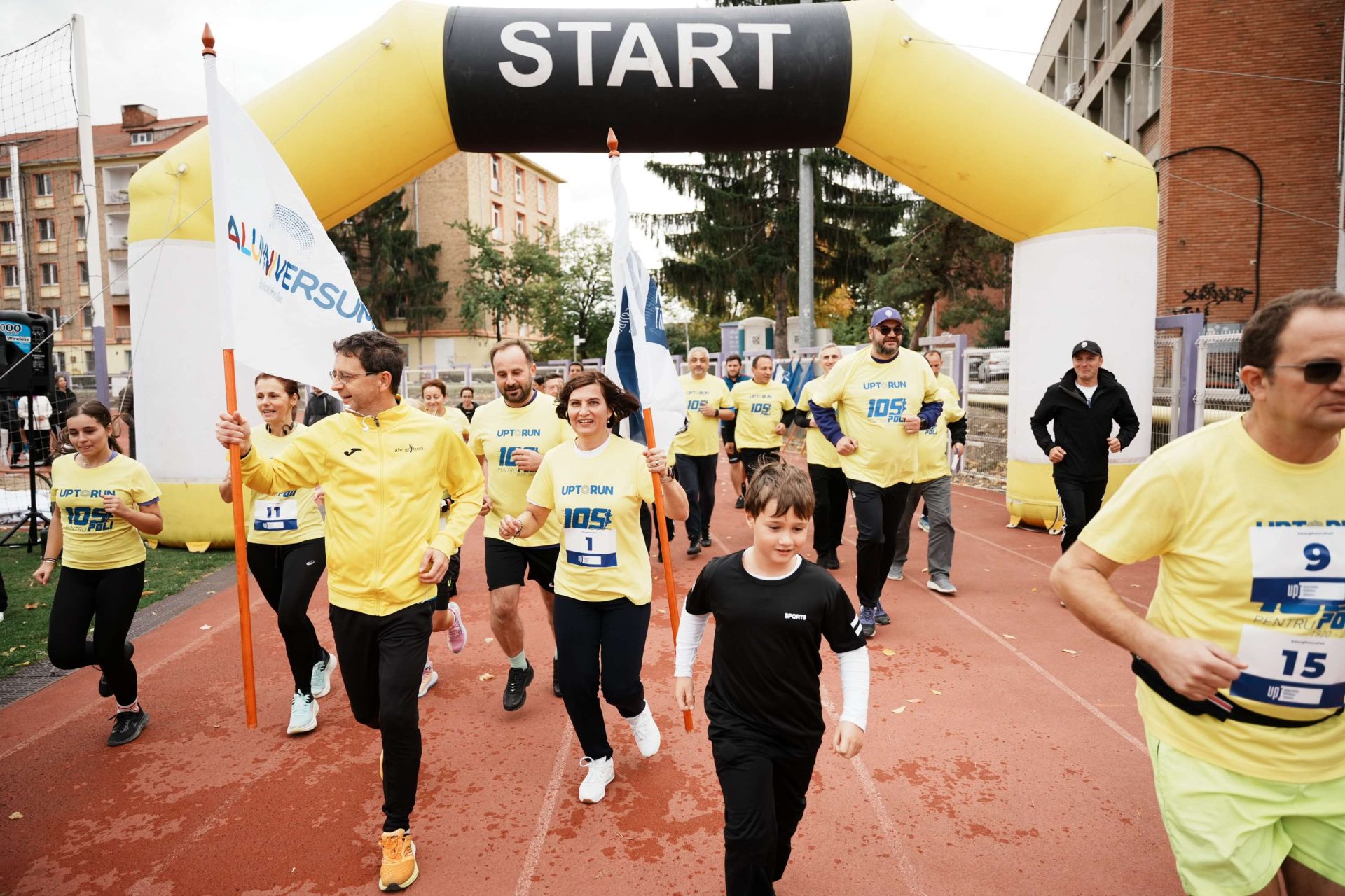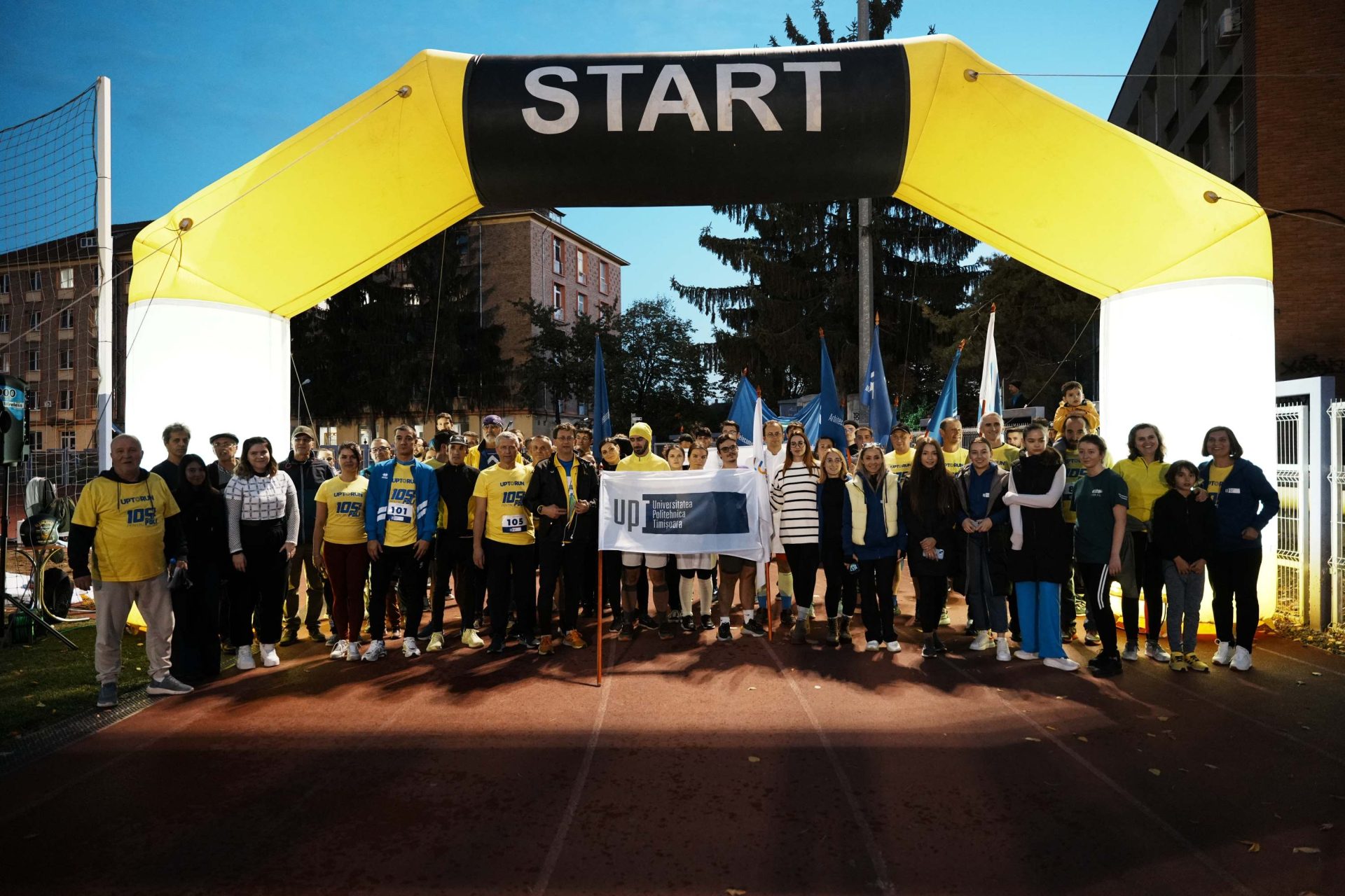 Pe stadionul „Știința”, loc emblematic pentru generații întregi de studenți, peste o mie de participanți – cadre didactice, studenți, angajați, absolvenți, parteneri, prieteni ai universității, dar și copii – au alergat, fiecare după puteri, câte unul sau mai multe tururi de pistă. În total, s-au parcurs 105 tururi de stadion, câte unul pentru fiecare an de existență a Universității Politehnica Timișoara.