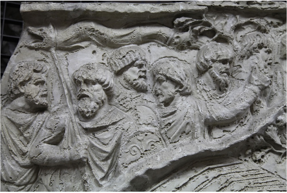 # În scenele sculptate ale Columnei lui Traian, războinicii daci apar purtând deseori astfel de simboluri, ele regăsindu-se redate şi pe monumente funerare ale unor ostaşi romani de origine dacică staţionaţi în Britania.