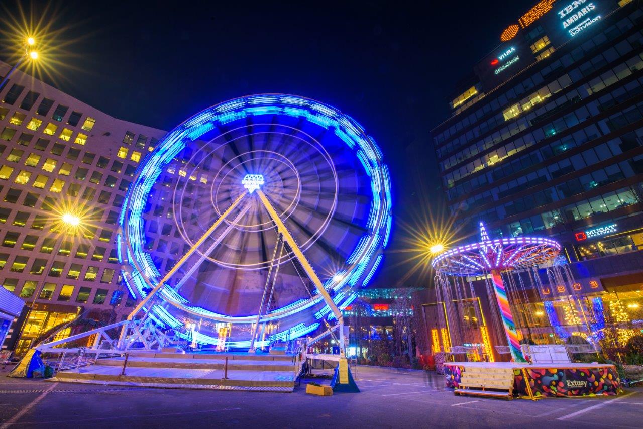 Mic sau mare, oricine va avea aici motive de bucurie, târgul incluzând: căsuţe cu bunătăţi de sezon şi idei de cadouri, food trucks cu preparate delicioase, un autodrom, un carusel rotativ cu lanţuri, o Piaţă de Brazi şi foto cornere tematice. Luminiţele şi decoraţiunile de Crăciun vor putea fi admirate altfel decât până acum, de la 30 de metri înălţime, din Roata Panoramică venită în premieră la Timișoara. Aceasta are 18 gondolea câte 4 locuri fiecare, iar o sesiune „în aer” durează aproximativ 10 minute. Pregătiţi telefoanele pentru fotografii „la înălţime”!