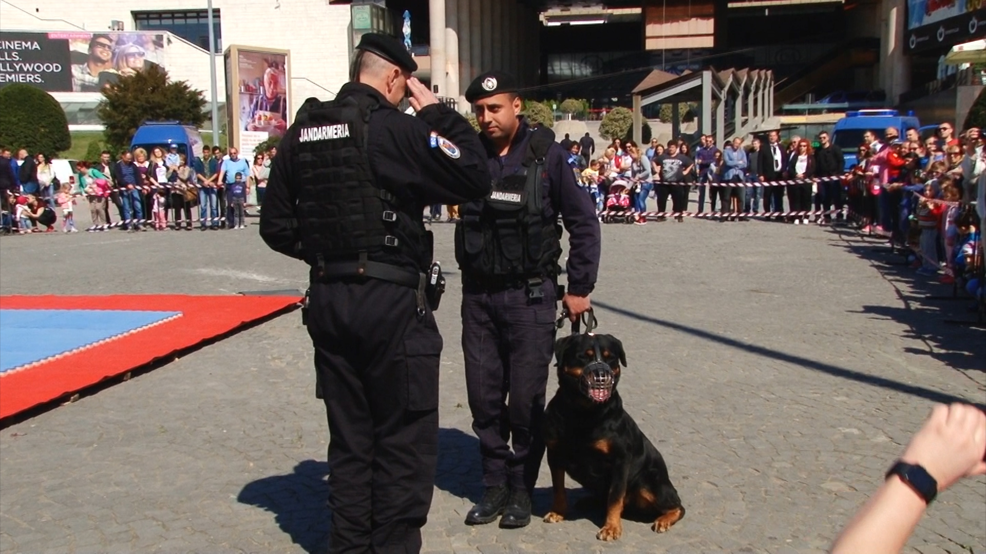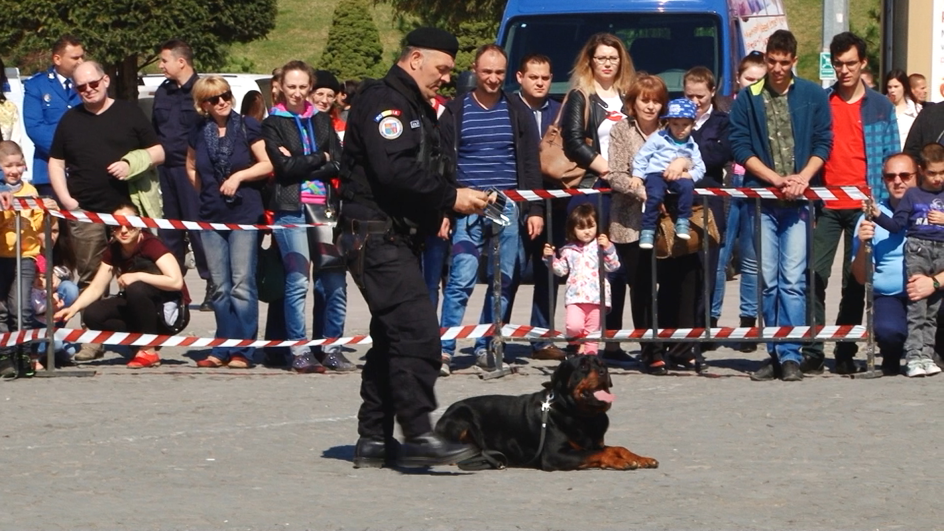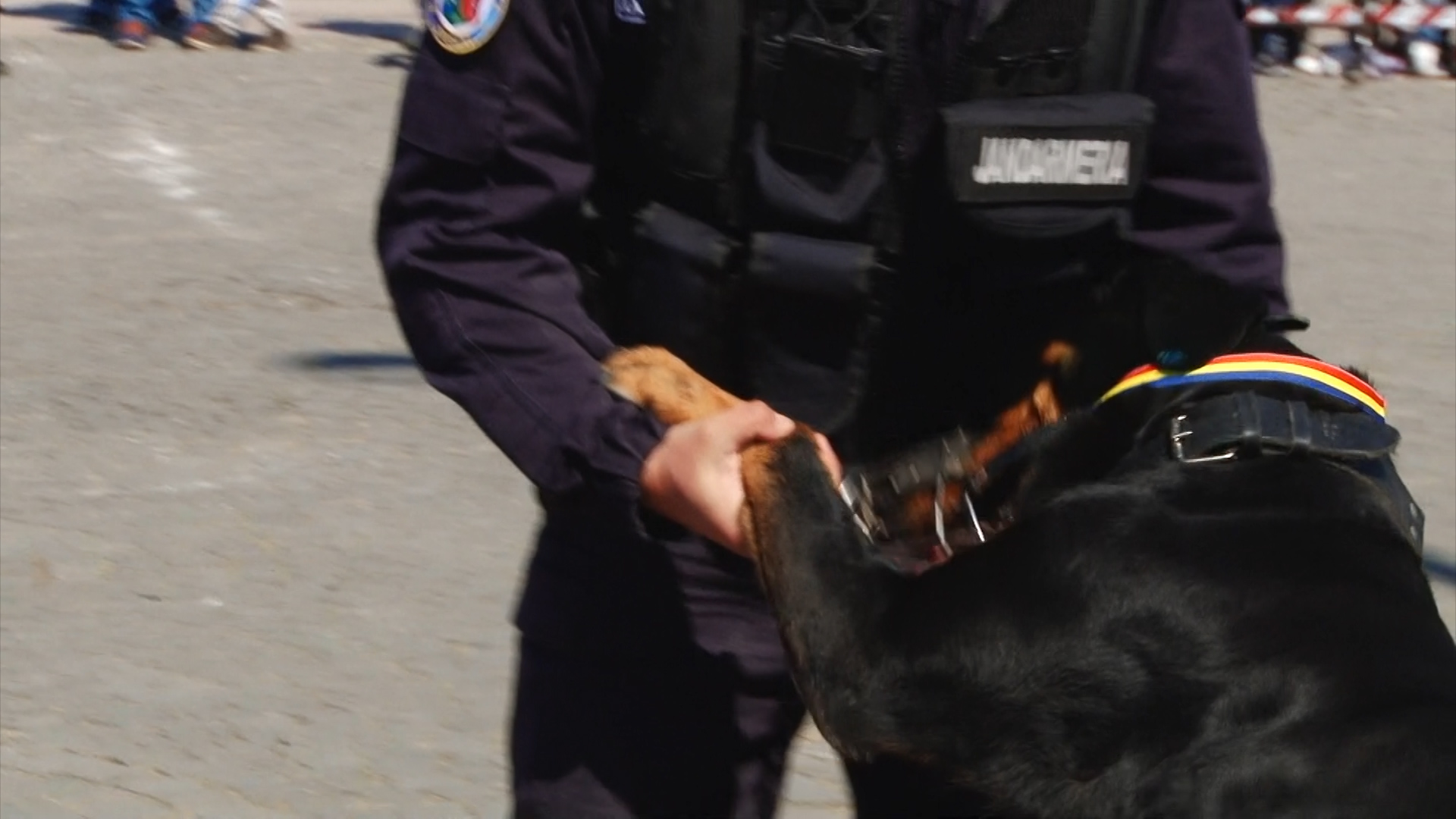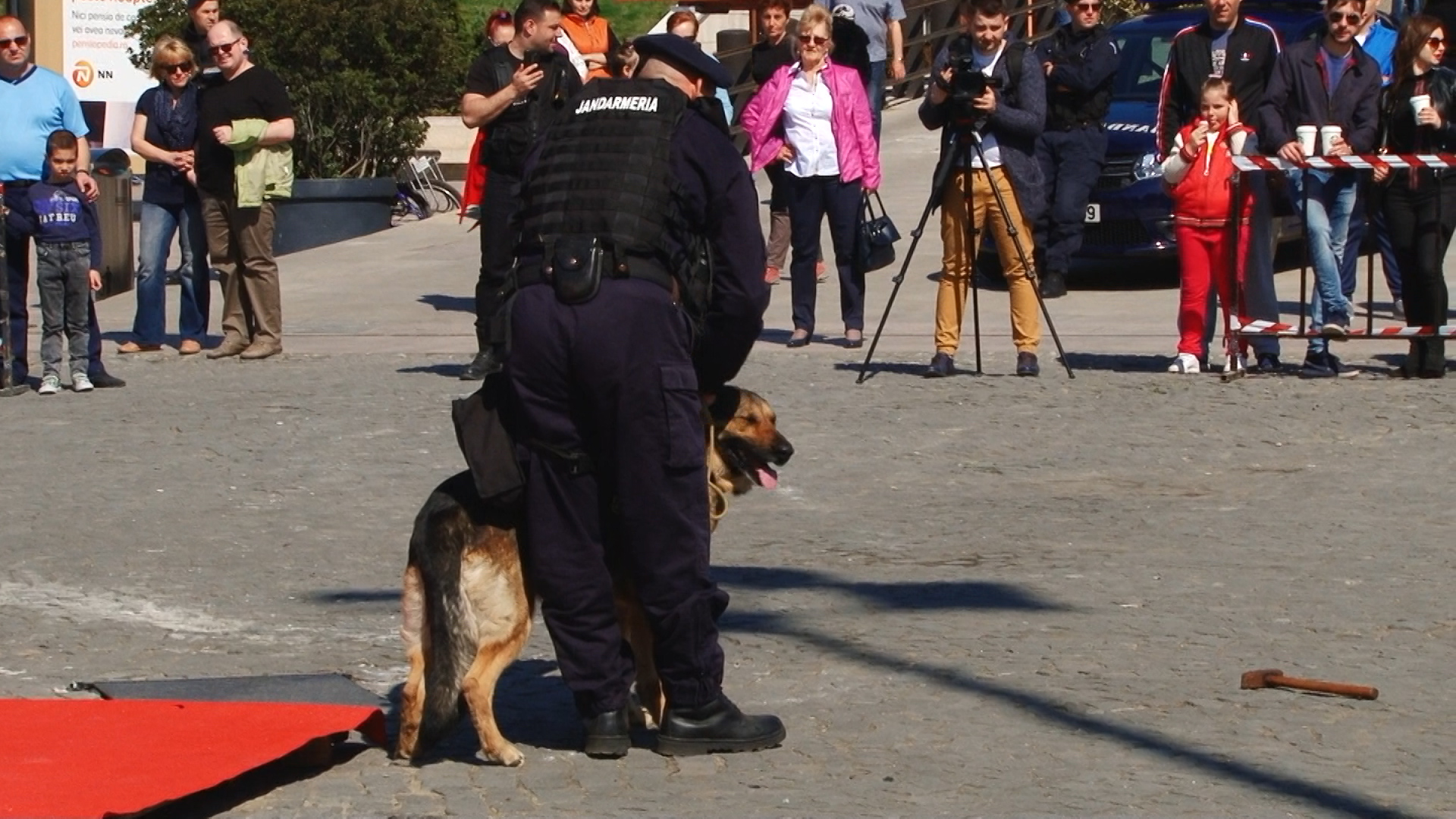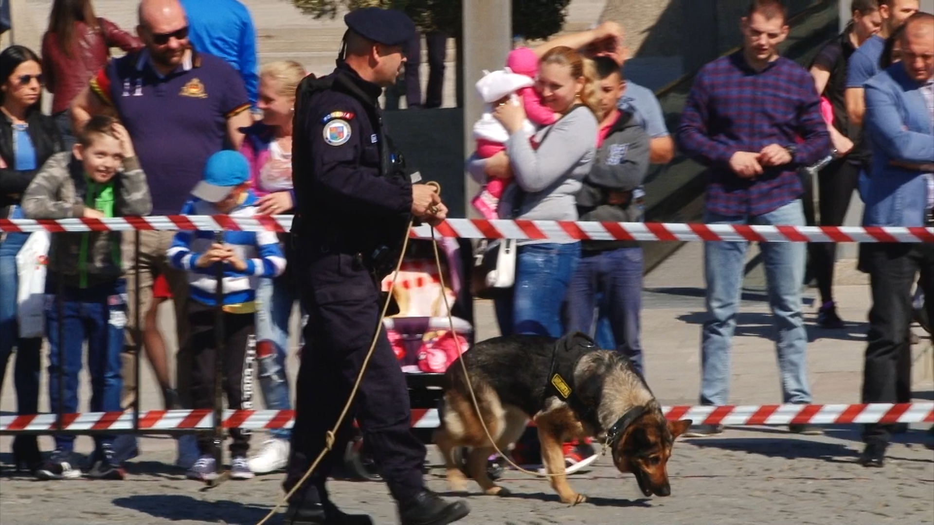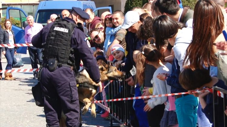 Câini de serviciu ai jandarmilor au fost fotografiați mai ceva ca marile vedete ale scenei. Toți țâncii de o șchioapă voiau sa-i mângâie sau chiar să-i îmbrățișeze.