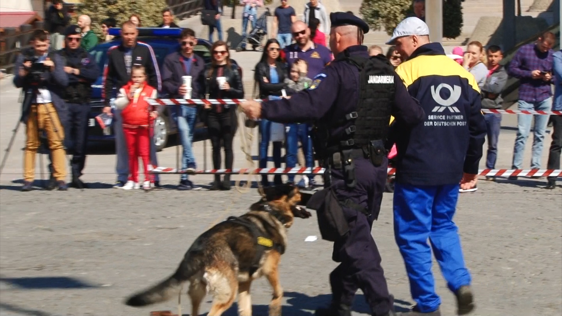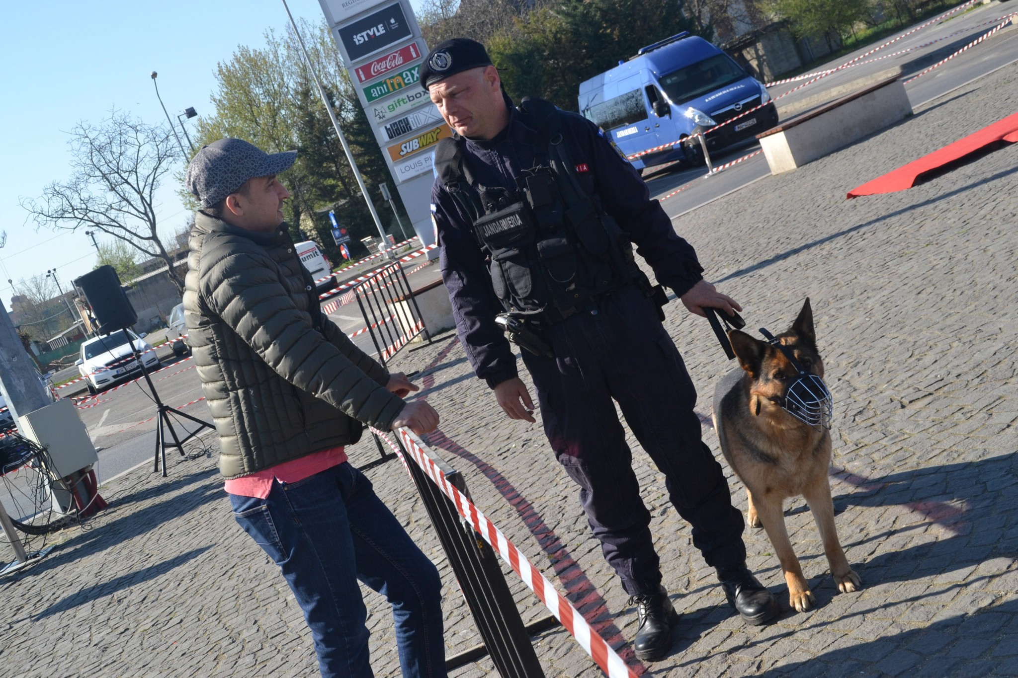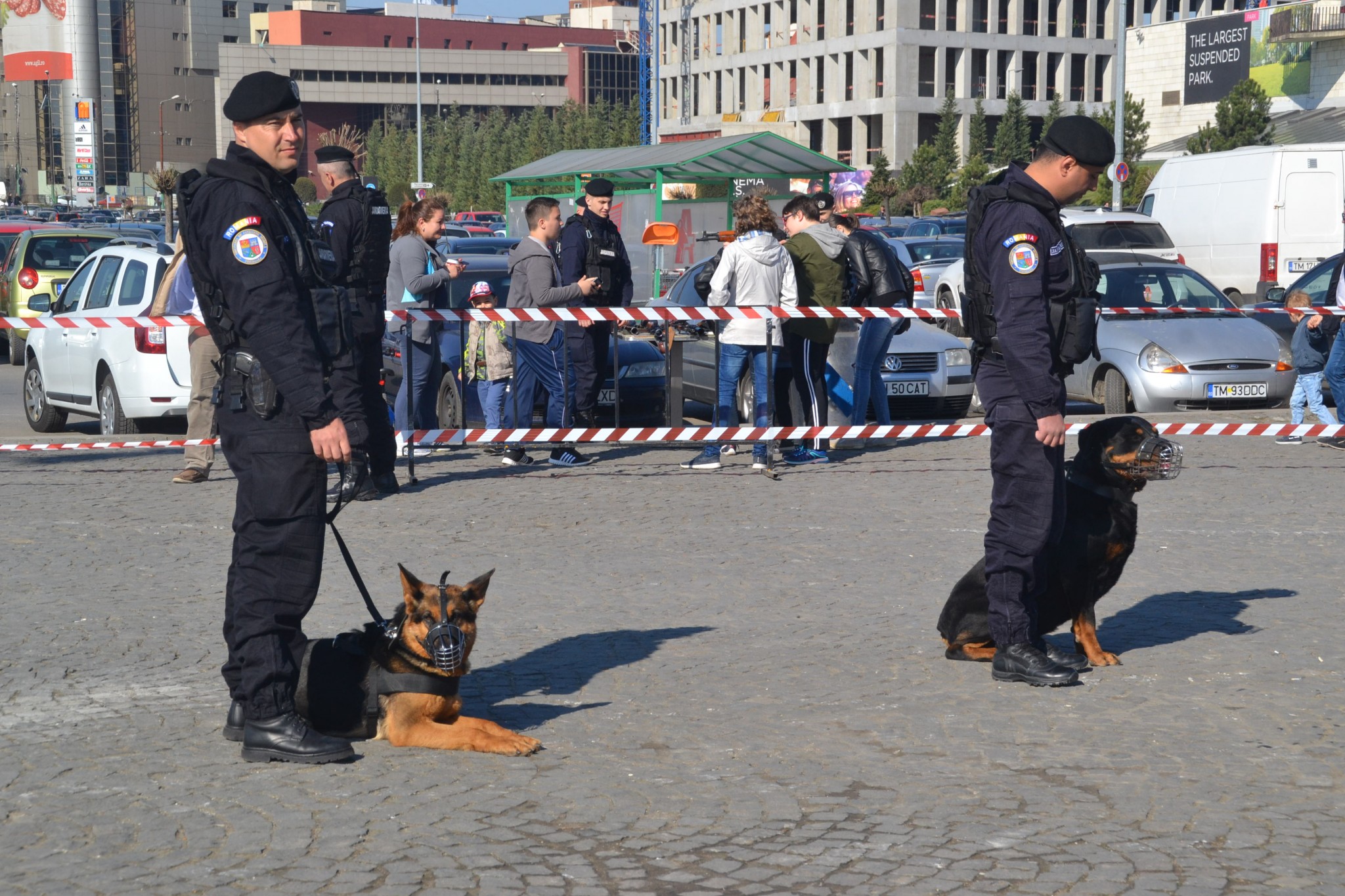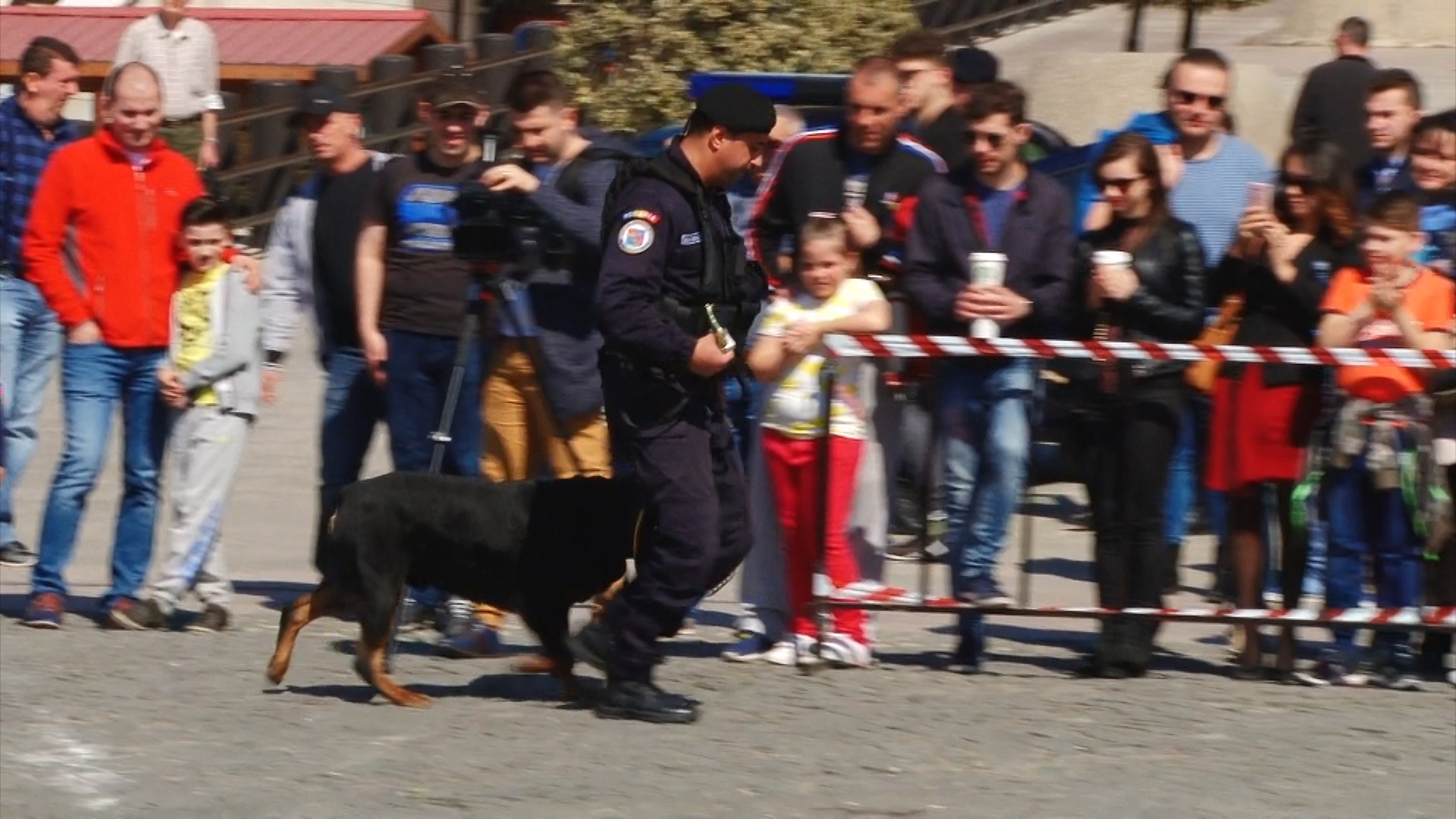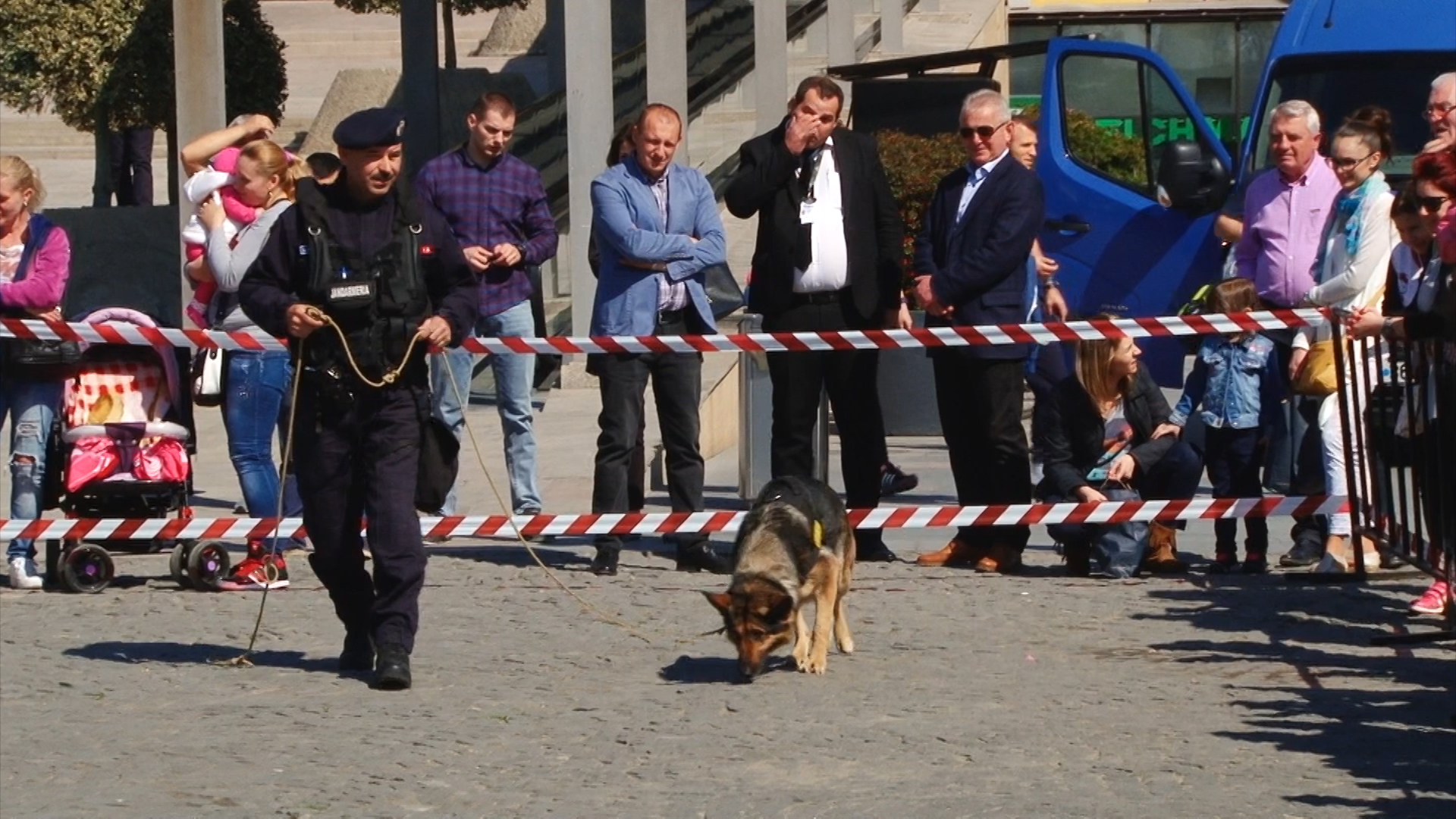 Câini de serviciu ai jandarmilor au fost fotografiați mai ceva ca marile vedete ale scenei. Toți țâncii de o șchioapă voiau sa-i mângâie sau chiar să-i îmbrățișeze.