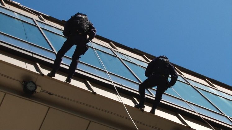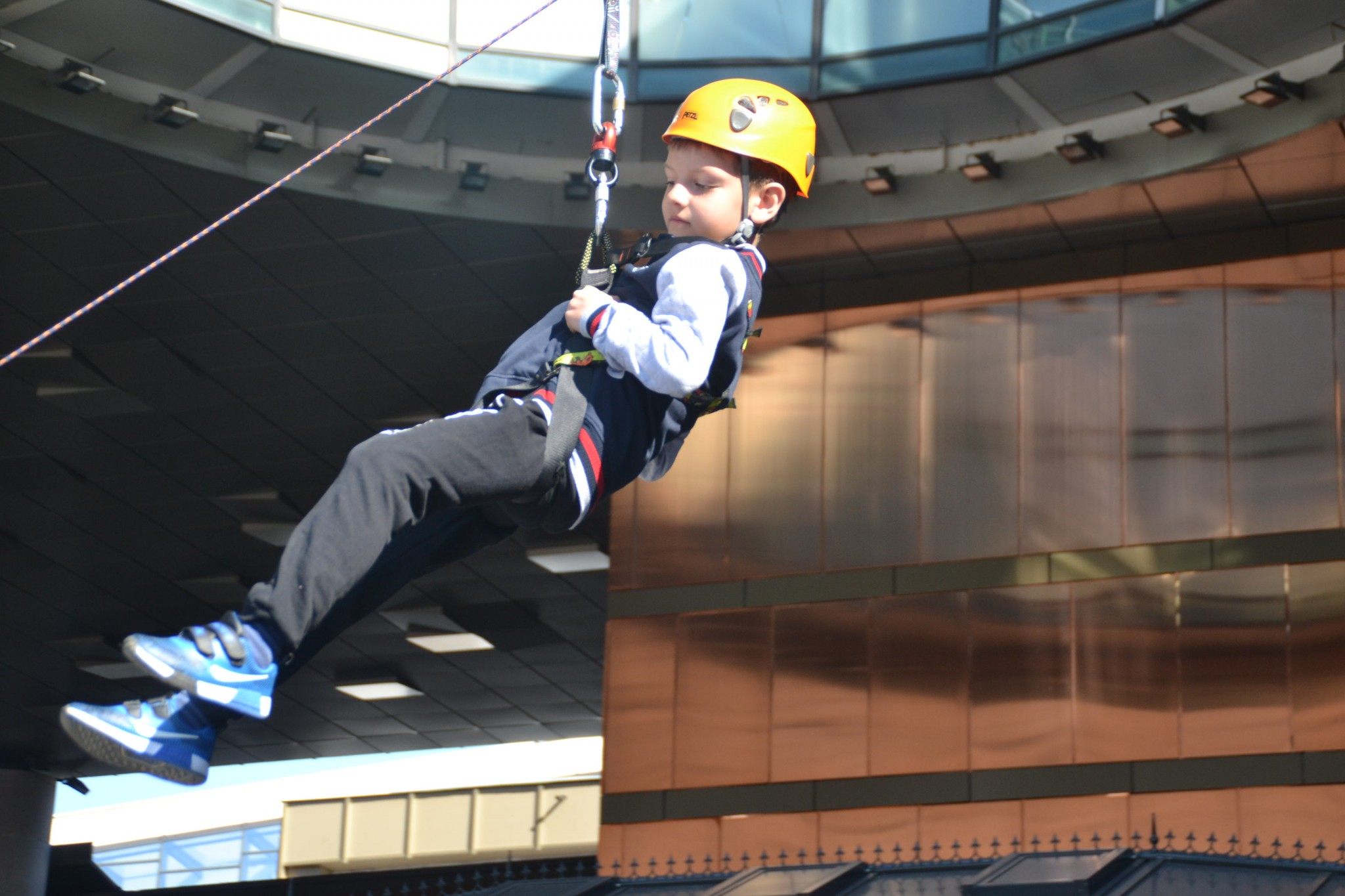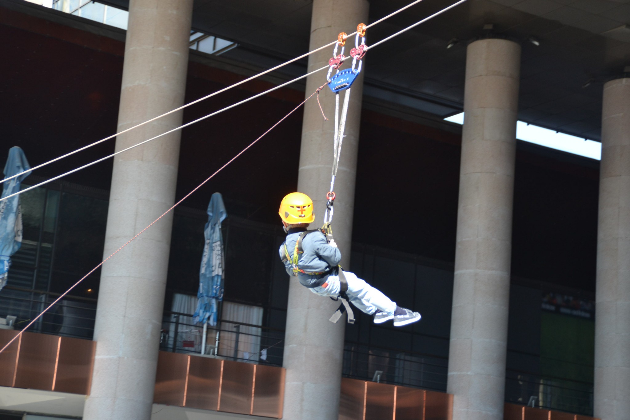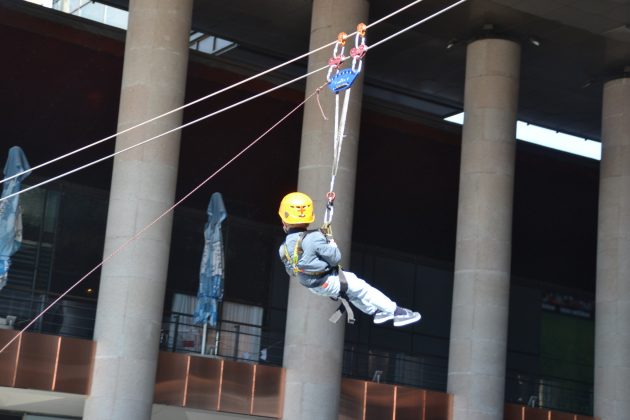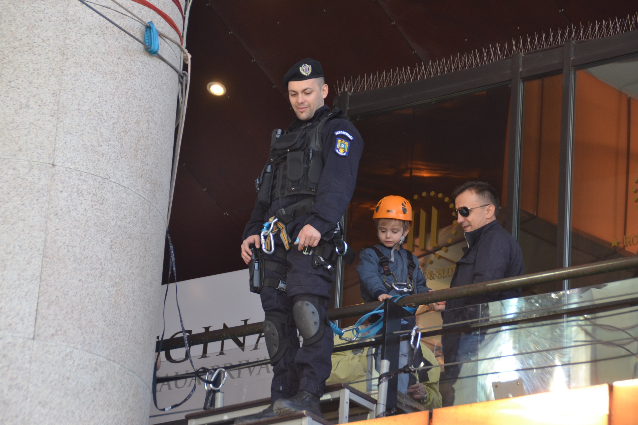 Un alt punct de mare atracție a fost amenajat de jandarmi în curtea interioară, unde oricine putea să încerce senzația de plutire în aer cu ajutorul corzilor de tiroliană. Aproape nimeni nu a fost speriat sau (cu excepția părinților).
