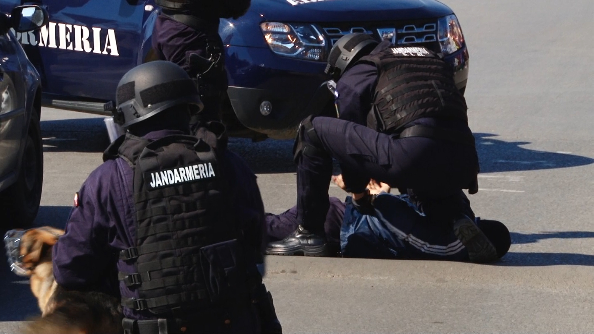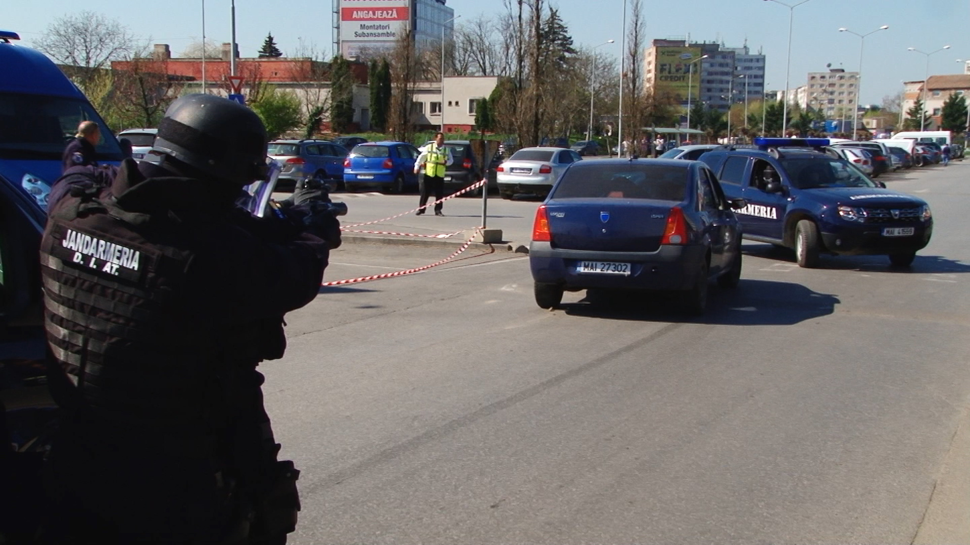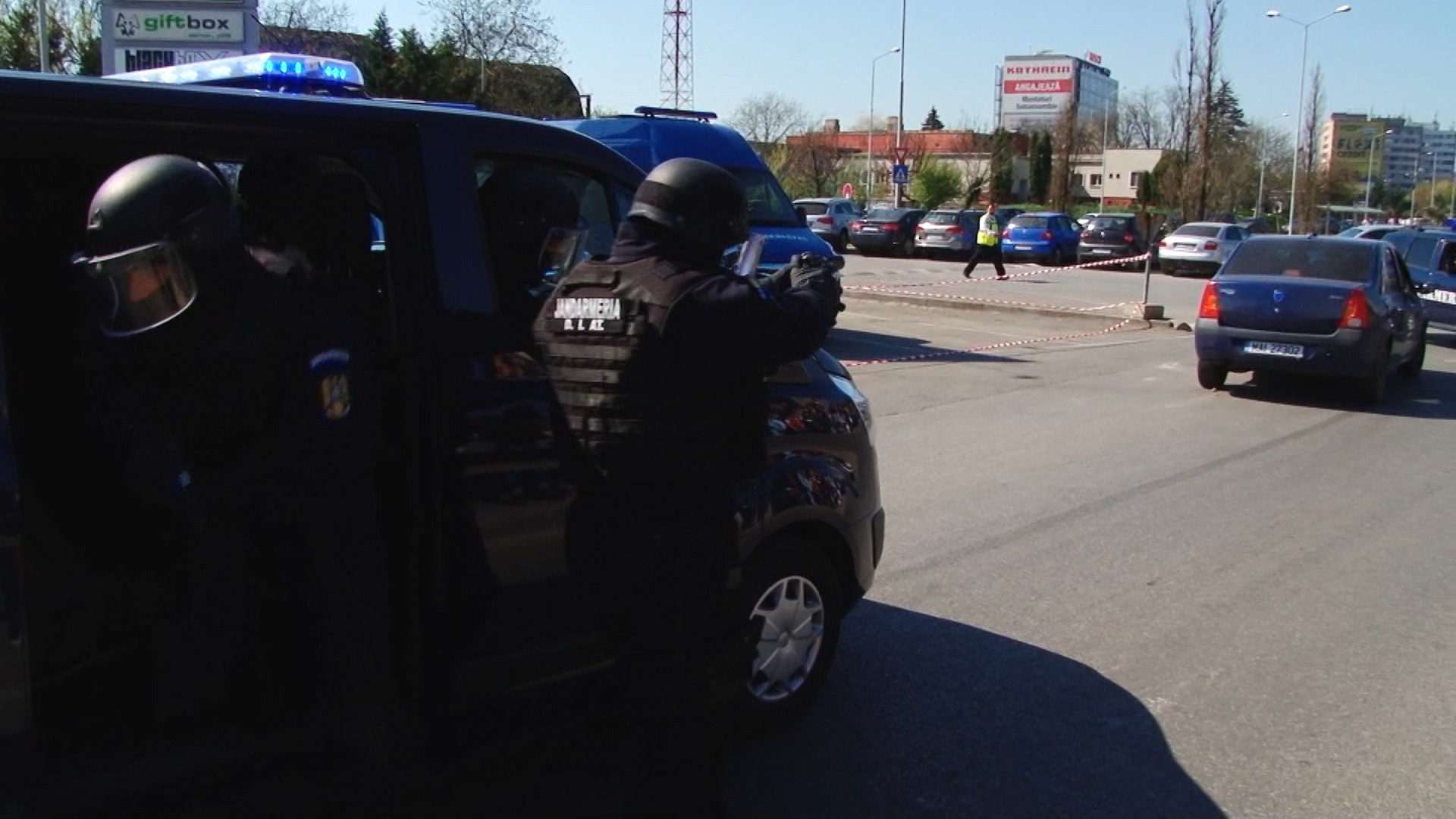 O altă bandă de interlopi a încercat să scape de la locul faptei dar jandarmii au acționat promt și i-au blocat în trafic prin metode specifice, cu mașinile cu girofar. Cu acest prilej infractorii vor afla cum arată în interior o dubă militară.
