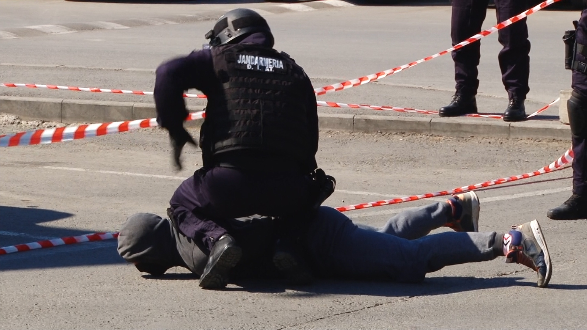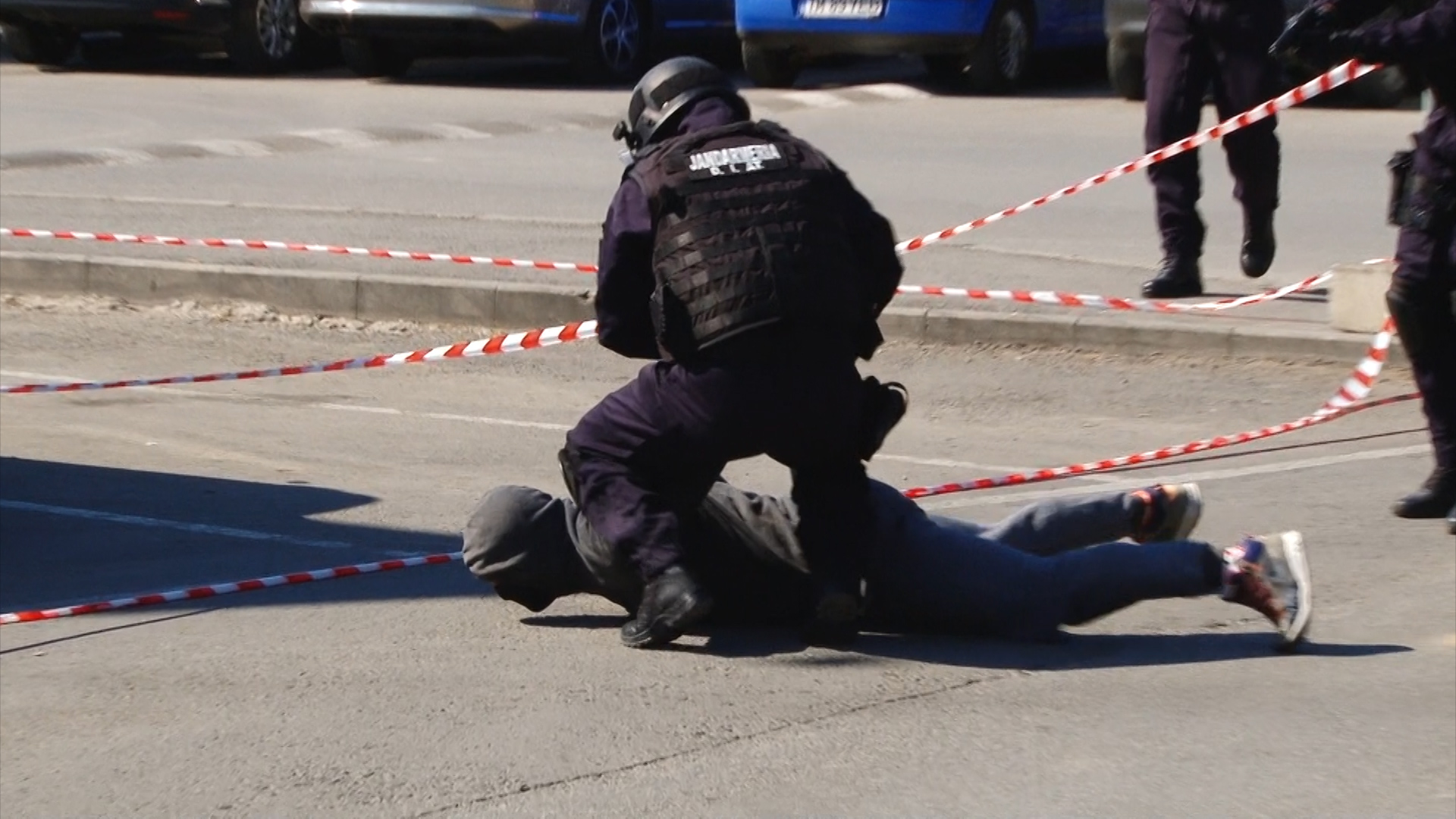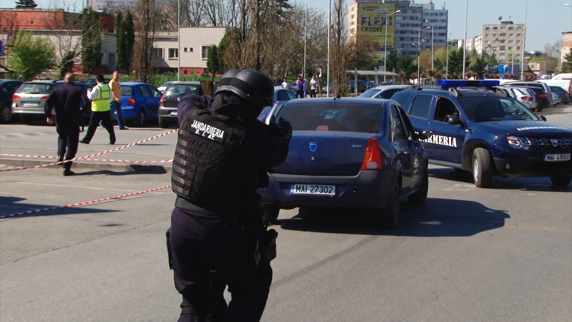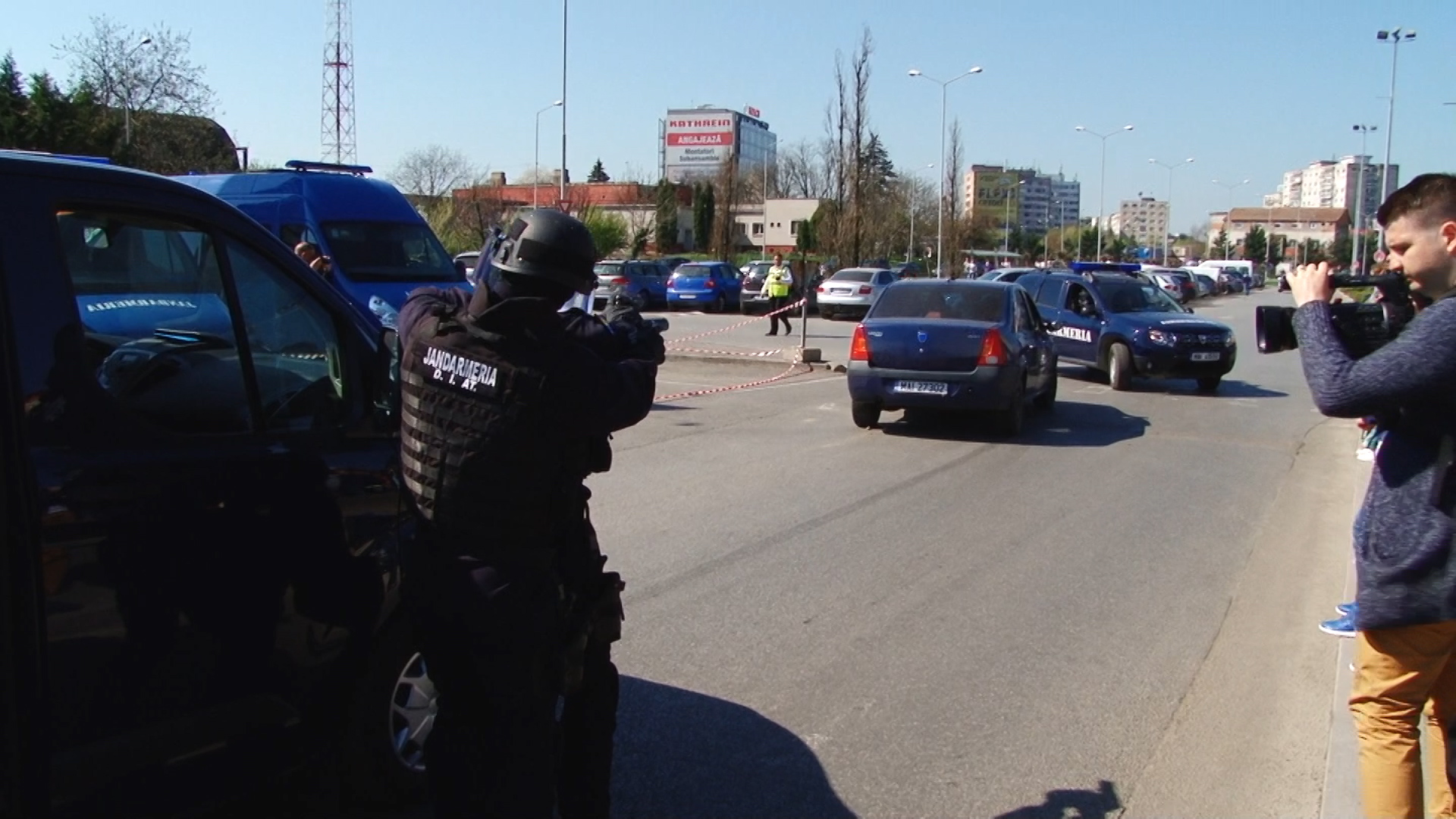 O altă bandă de interlopi a încercat să scape de la locul faptei dar jandarmii au acționat promt și i-au blocat în trafic prin metode specifice, cu mașinile cu girofar. Cu acest prilej infractorii vor afla cum arată în interior o dubă militară.
