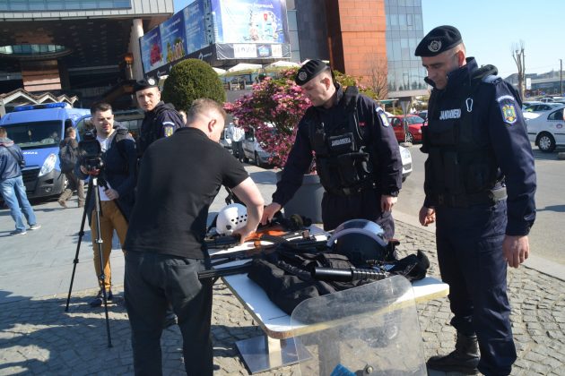 Pentru a arăta civililor mai puțin familiarizați cu se ocupă de fapt acești militari în albastru (sau uneori în negru), jandarmii timișoreni azi au ocupat o parte din centrul comercial Iulius Mall.