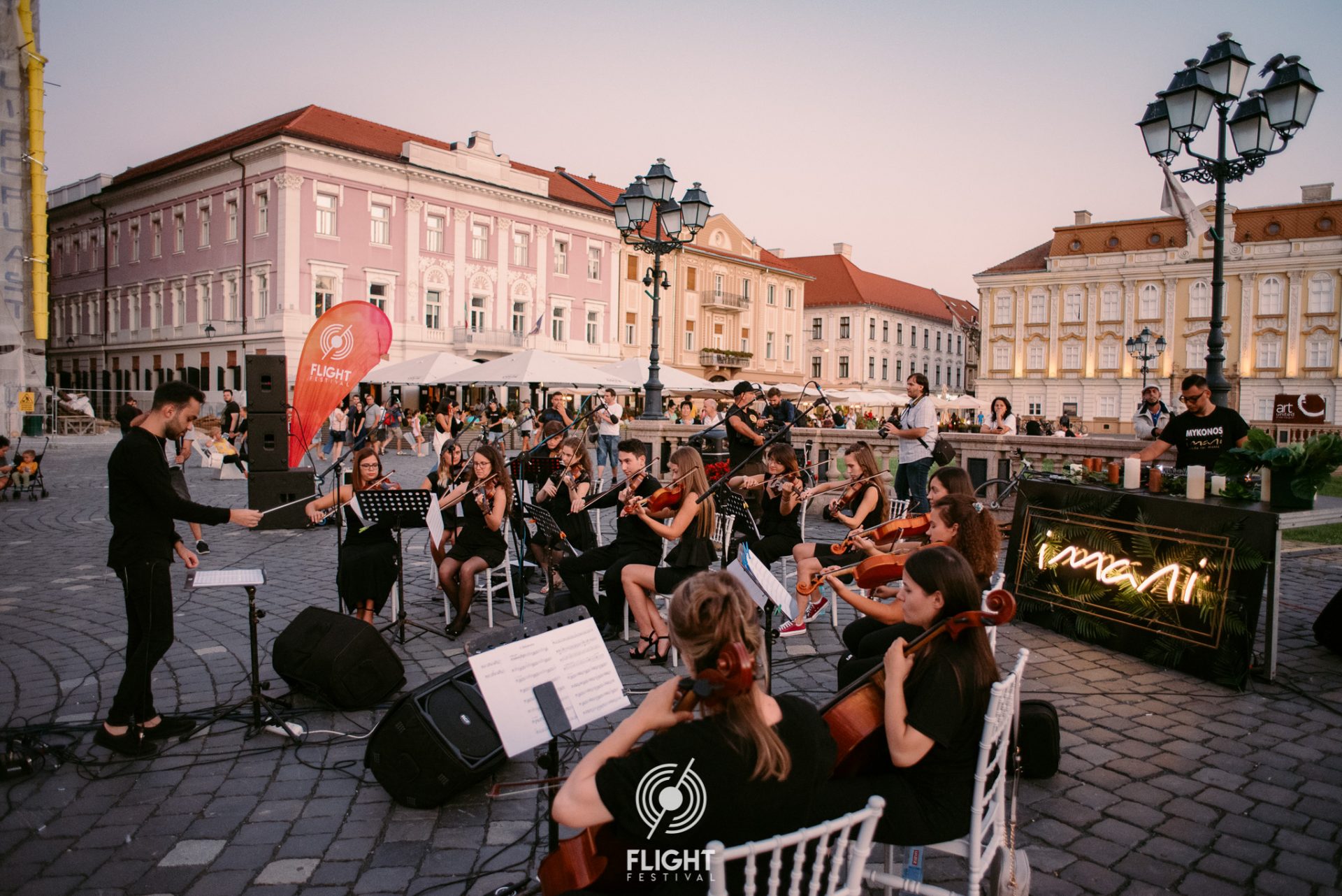 Flight Festival împânzește orașul Timișoara pentru următoarele 13 zile. Pregătirea pentru decolare a avut loc în seara de 19 august, în Piața Unirii, cu un moment artistic realizat de Flight Orchestra și Imani Music, o serie de activități inedite pentru cei prezenți în piață și un cocktail party în locația D’arc.