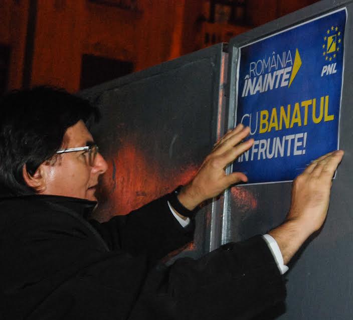 Concomitent, reprezentanţii PNL au ieşit în Piaţa Victoriei şi liderul liberal, Nicolae Robu, a fost cel care a lipit primul afiş.