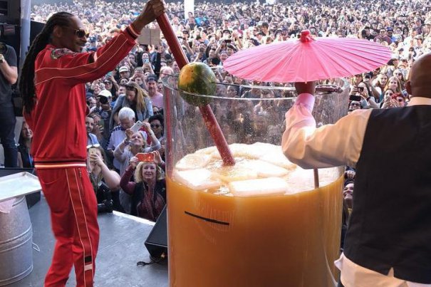 Cartea Recordurilor a confirmat că uriaşul pahar cu băutură, care a fost preparat sâmbătă la festivalul BottleRock Napa Valley, chiar de Snoop Dogg, Warren G şi Michael Voltaggio, este cel mai mare cocktail din lume.