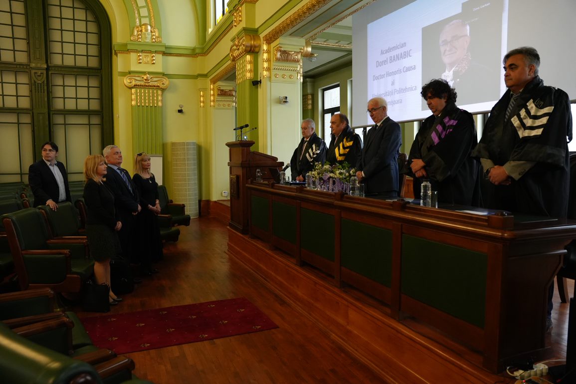 Senatul Universității Politehnica Timişoara s-a reunit joi, 11 mai 2023, în ședință festivă, în vederea decernării celei mai înalte distincții pe care o poate acorda în România o instituție de învățământ superior, titlul de Doctor Honoris Causa academicianului Dorel Banabic, de la Universitatea Tehnică din Cluj-Napoca, pentru remarcabilele sale realizări în activitățile didactice, de cercetare și cooperare națională și internațională, inclusiv cu UPT.