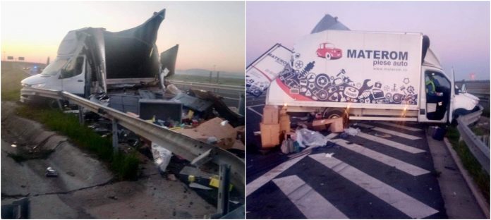 Un grav accident de circulație a avut loc, vineri dimineața, pe autostrada A1, în vestul țării. O camionetă și un TIR s-au ciocnit, iar circulația pe prima bandă a șoselei rapide este blocată.