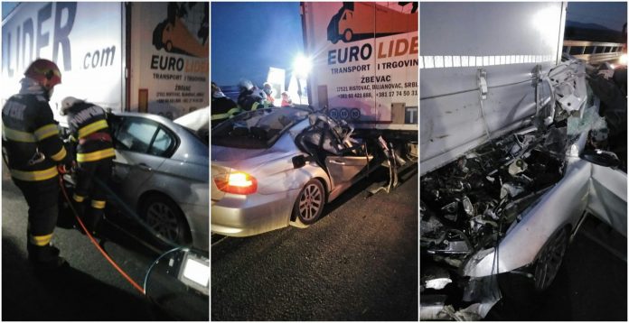 O persoană a decedat, în această dimineață, după ce a intrat cu mașina, din plin, într-un autocamion, pe Autostrada A1, în zona ieșirii înspre localitatea Margina.