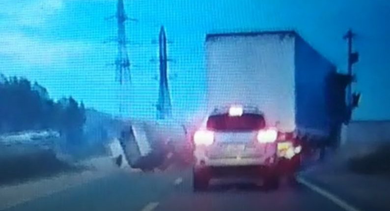 Momentul impactului din accidentul rutier mortal petrecut joi seara pe şoseaua de centură a oraşului Alba Iulia, în urma căruia un bărbat de 54 de ani şi-a pierdut viaţa a fost surprins în imagini de către un participant la trafic. Autoutilitara a fost pur şi simplu spulberată de TIR-ul ce rula regulamentar din sens opus, în coloană.