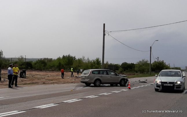 Accident rutier, sâmbătă, pe Drumul Judeţean 687 Hunedoara – Deva, una dintre cele mai intens circulate şosele din judeţ.