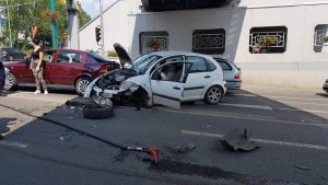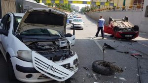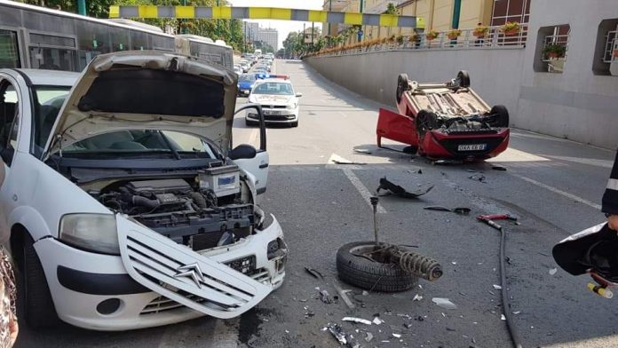 În urma impactului, autoturismul condus de femeia de 55 de ani, s- răsturnat, iar celălalt a intrat în coliziune cu un alt autoturism, ce era staționat la semafor.
