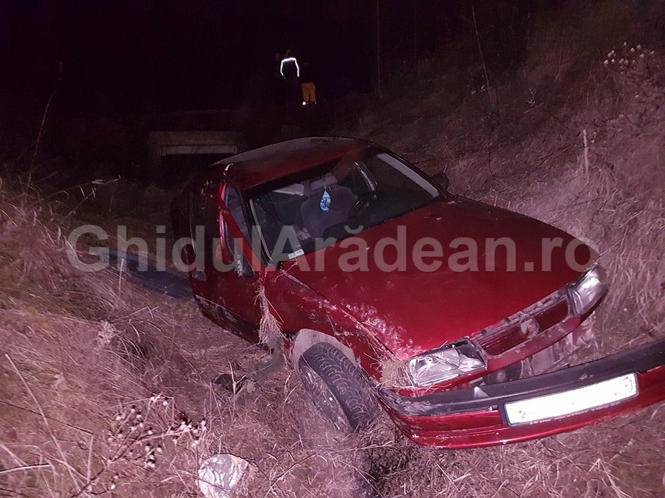 Totul s-a întâmplat marţi seara în jurul orei 23.10, atunci când conducătorul autoturismului OPEL de culoare vişinie care se deplasa dinspre Arad spre Chişineu-Criş, a uitat să ia curba în sensul giratoriu, s-a izbit puternic de parapetul de beton, după care a ieşit în afara părţii carosabile plonjând direct în şanşul aflat pe marginea drumului.