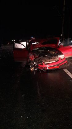 Martorii afirmă că șoferul mașinii de culoare roșie circula regulamentar pe DN7 dinspre Arad când o mașină i-a ieșit în față de pe o stradă din localitate.