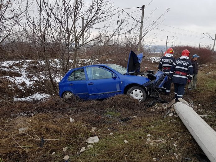 Pompierii Detașamentului Deva, specializați în descarcerare și stingere au intervenit de urgență la locul accidentului în care a fost implicat un autoturism care a intrat într-un stâlp de curent situat pe marginea drumului.