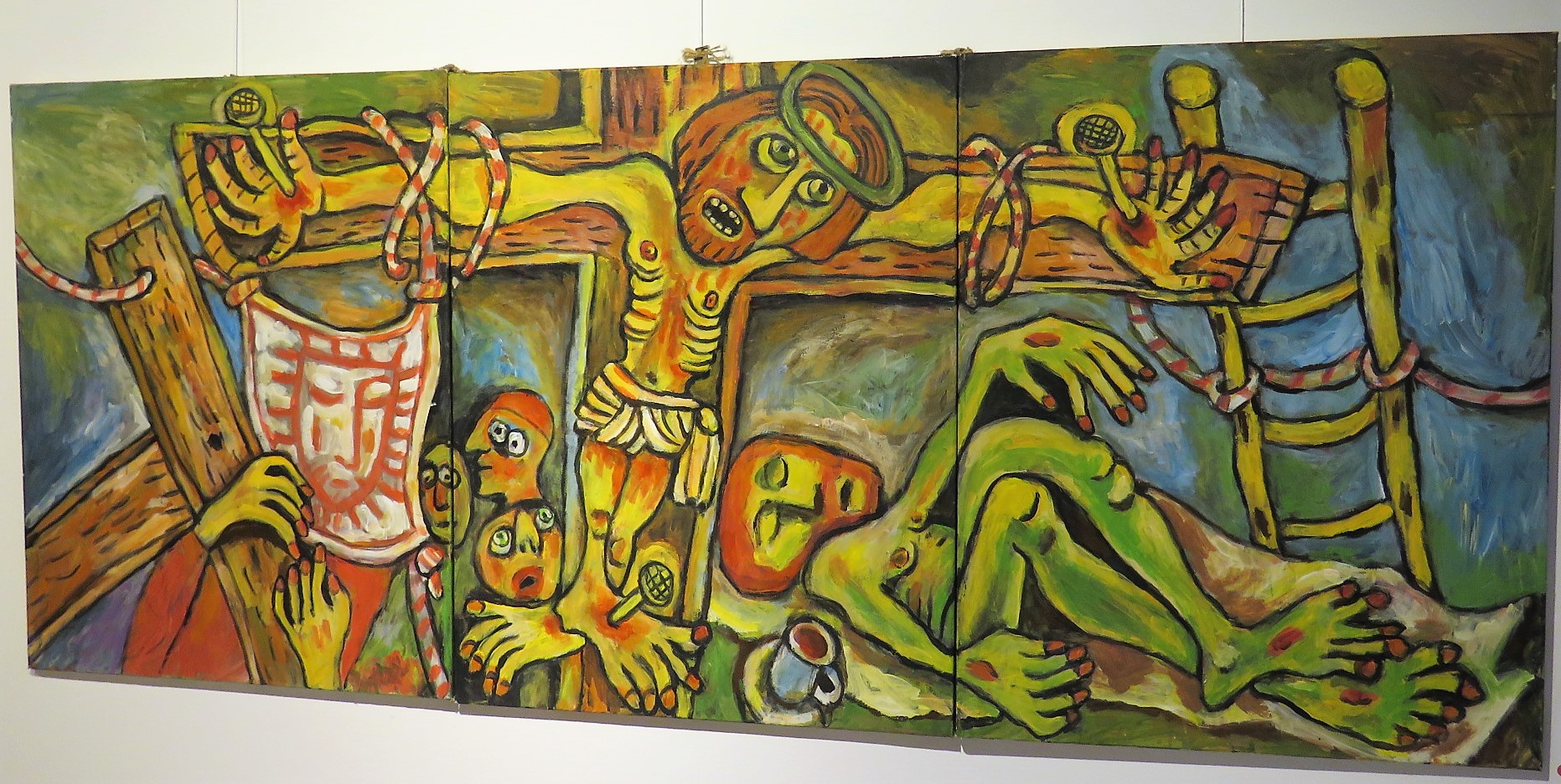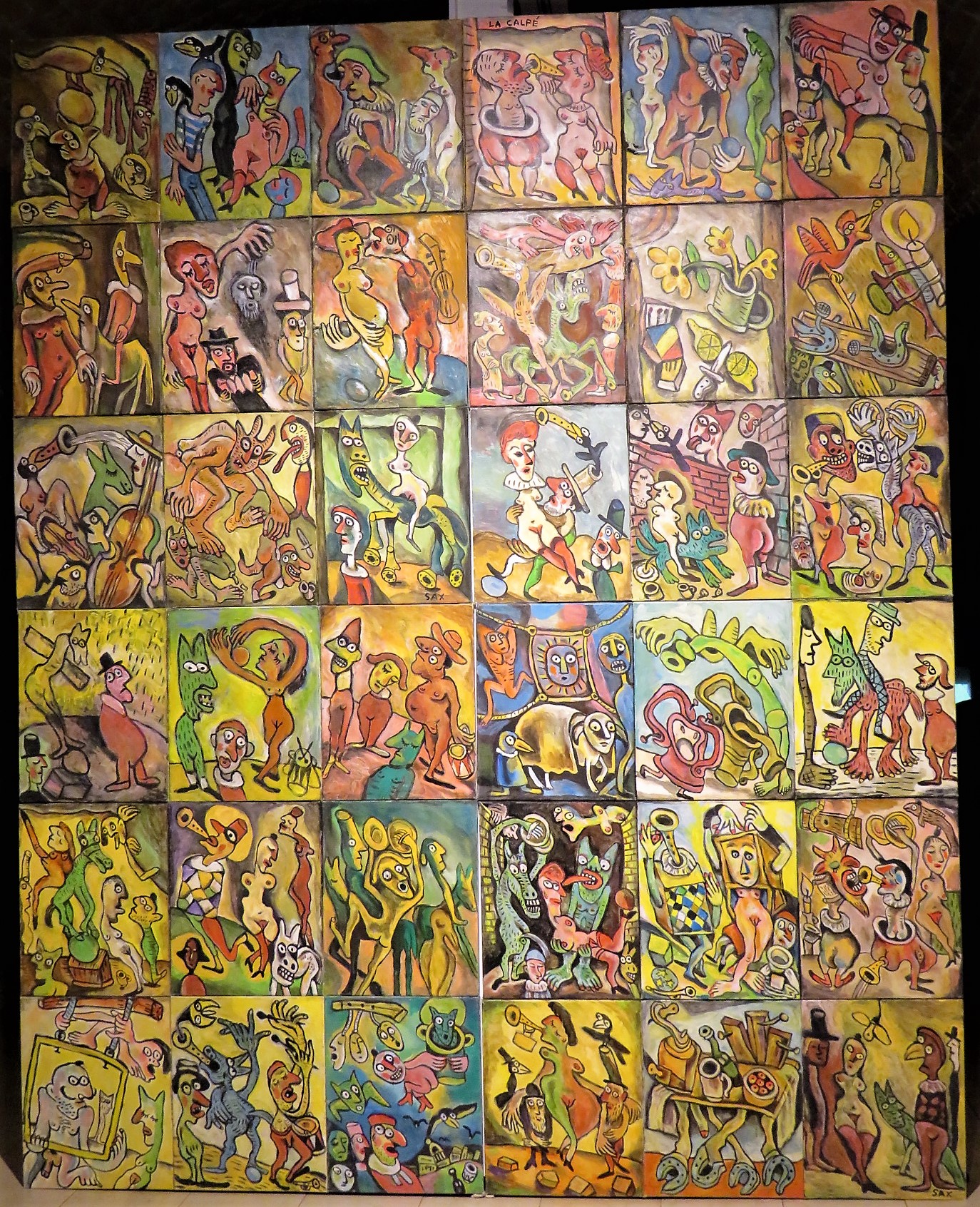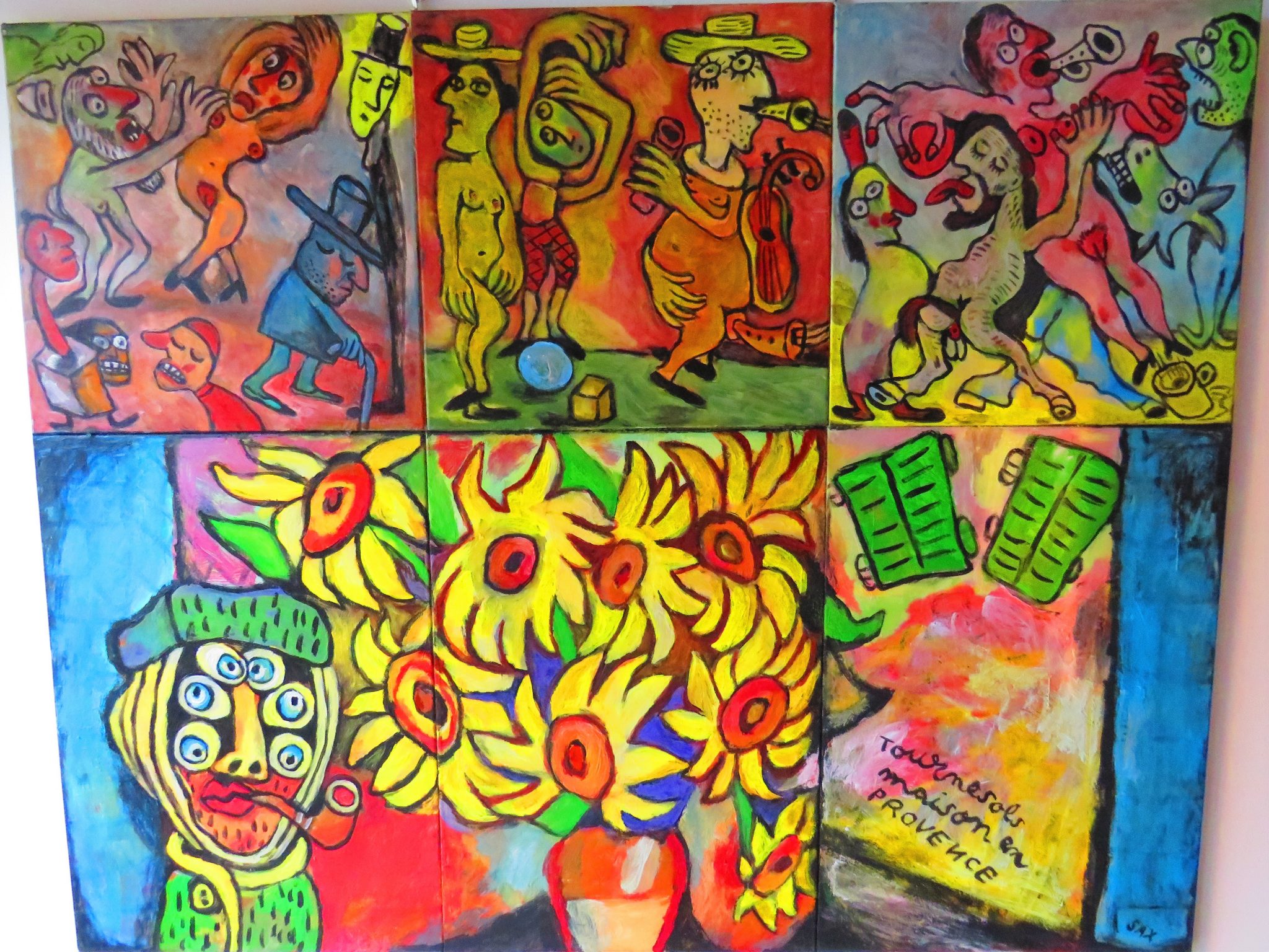 Din 4 iunie, când s-a deschis și când a avut loc vernisajul, și până în 28 iunie, la Calpe e de văzut „Între vis și coșmar”, expoziția de pictură a lui Sax Moradi. Care lasă privitorul cu gura căscată. Și asta pentru că e șocantă, e wow! Nu toate gurile sunt wow din admirație, însă. Sigur vor exista și privitori cărora nu le va plăcea pictura lui Sax. De ce nu? Fiindcă e lipsit de retorică, nu face cu ochiul, nu o dă la întors, nu e șmecher. Fiindcă nu e purtător de convenție stilistică, ci e brut, frust, ușor naiv. Fiindcă, deși are referințe și trimiteri vizuale evidente, care vă vor face să ridicați din sprâncenele cunoscătoare și să vi se confirme ceea ce știți în materie de artă modernă, e original. Nu-i nici Picasso, nici Van Gogh, nici Chagall, nici Bosch, nici Dix. E Sax. Sax al nostru. Și asta intrigă.