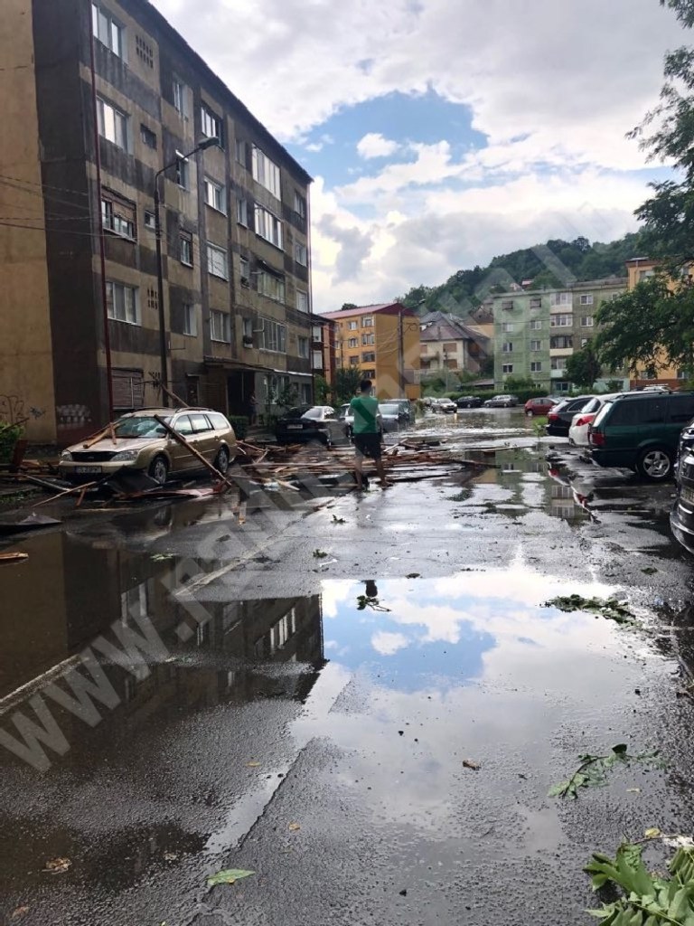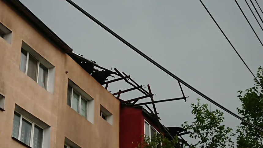 Acoperişul unui bloc din cartierul Moroasa II a fost smuls de furtuna abătută asupra Reşiţei în această după-amiază.