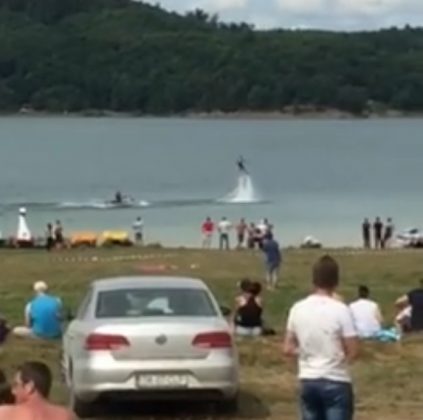 În timp ce cerul era brăzdat de avioanele iscusiţilor piloţi, apa era crestată de aventurierii cu ski jet-uri. Acrobaţiile nu au lipsit nici în aer nici pe apă.