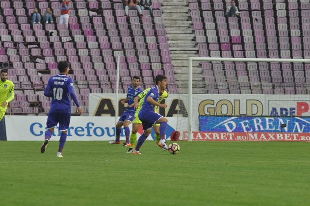 Unicul gol al meciului a fost marcat în minutul 29 de Ciprian Rus la capătul unei faze la care au participat jucători cu experiență ai oaspeților ca Mureșan și Surdu. A fost una dintre puținele situații dintr-o primă repriză destul de ștearsă. În minutul 34, Popovici a avut șansa egalării în picior dar șutul său a fost respins de Mingote. La faza următoare gazdele au avut emoții la ocazia lui Kuku.