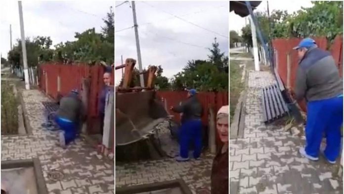 Localnicii au privit uluiți cum excavator smulge banca de la poarta casei, iar o femeie se ceartă cu angajații primăriei. „Ce se întâmplă dacă nu votezi cu Enache Aurel, ia banca de la poartă”, spune supărat bărbatul care filmează.