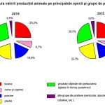 Structura valorică a producţiei animale la principalele specii şi grupe de produse prezintă mici diferenţe în anul 2015 faţă de anul precedent.