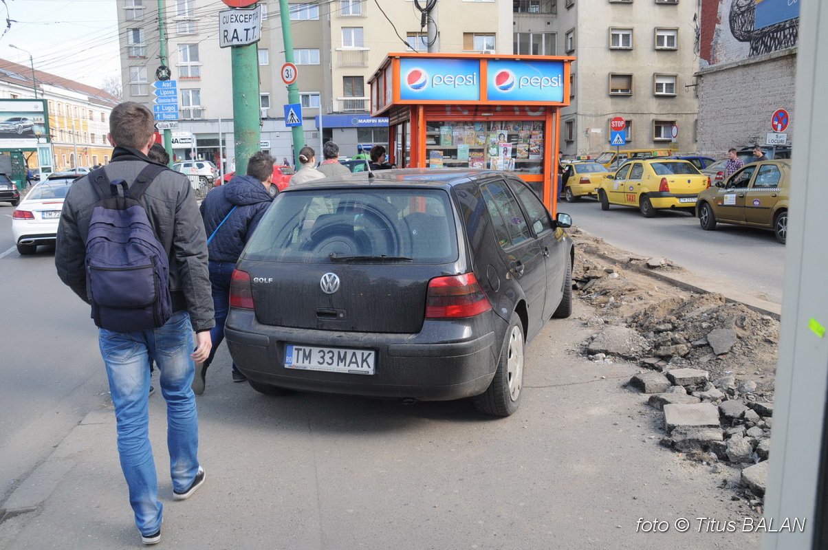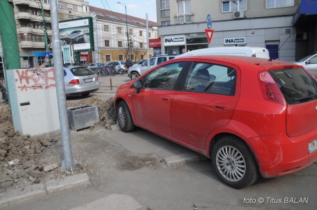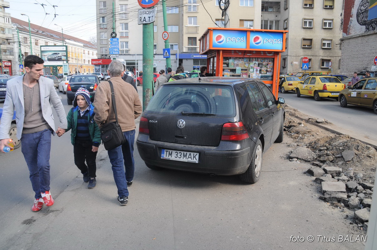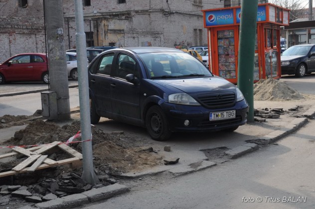 În majoritatea locurilor din Timişoara trotuarul este locul în care pietonul trebuie să se ferească de toate pericolele posibile și să tâșnescă din fața maşinilor ce hălăduiesc pe acolo nestingherite. Sau să fie cu mare băgare de seama la gropile uitate deschise și de şanţuri neterminate cu lunile.