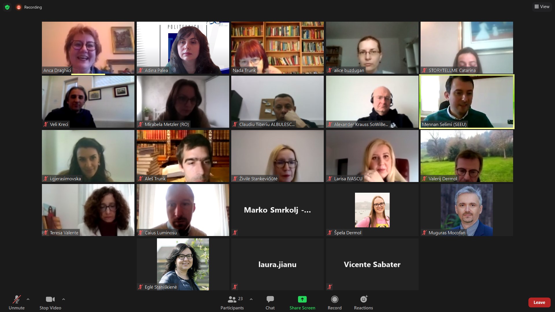 Echipa UPT, coordonată de prof.dr.ing. Anca Drăghici, susținută de departamentele de Relații Internaționale, Comunicare și Imagine, Financiar-Contabil și de Centrul de e-Learning, s-a întîlnit on-line cu reprezentanți ai universităților partenere (Universidad de Alicante – Spania, Kaunas University of Technology – Lituania, International School for Social and Business Studies – Slovenia, South East European University Tetovo – Macedonia de Nord), dar și cu experți (parteneri ai proiectului) în crearea resurselor digitale, a tehnologiilor de comunicare și multimedia (Storytellme – Portugalia, SoWiBeFo – Germania).