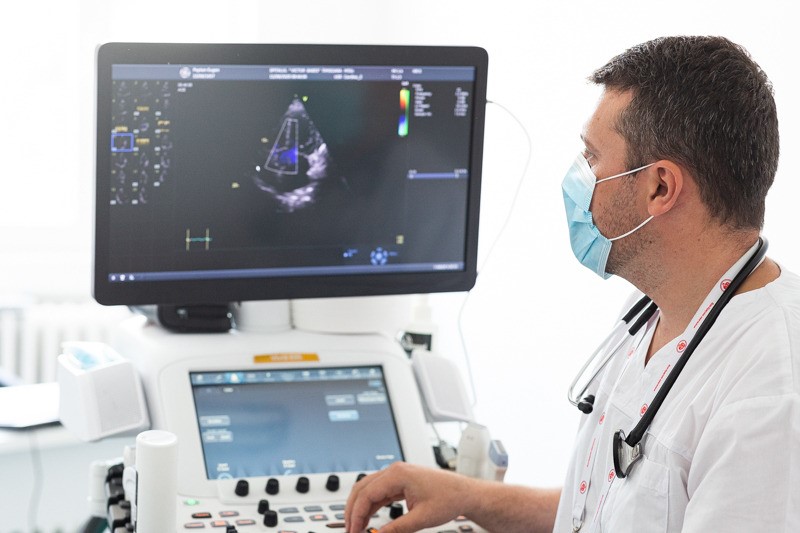 De asemenea, pe lângă evaluarea morfologică a cordului, ecograful permite caracterizarea din punct de vedere funcțional a acestuia prin utilizarea tehnicilor Doppler color, Doppler Spectral sau Doppler Tisular. Cu ajutorul aparatului, care folosește cele mai noi softuri din acest domeniu, pot fi evaluați indicii de disincronism cardiac, utilizați în cadrul terapiei de resincronizare la pacienții cu insuficientă cardiacă avansată.