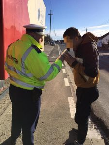 Un conducător auto a fost sancționat cu amendă în valoare de 1.425 de lei, fiindu-i suspendat dreptul de a conduce pentru 90 zile, fiind depistat în timp ce conducea sub influența alcoolului: 0,07 mg./l. alcool pur în aerul expirat.