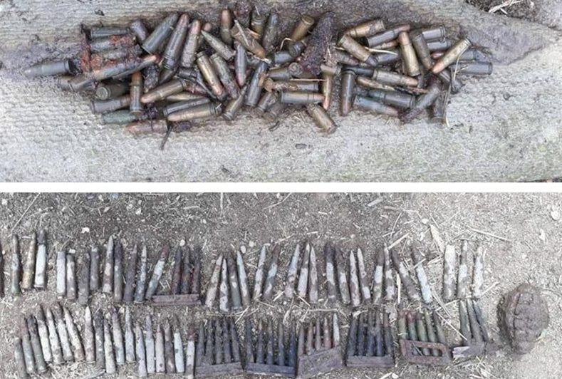 Omul ieşise să muncească pământul, când a dat de un cartuş. Imediat a sunat la 112 şi a aşteptat intervenția specialiștilor. Cu mare grijă, aceştia au mai descoperit 168 de cartuşe de infanterie de calibrul 7,92 și 9 mm și o grenadă defensivă.