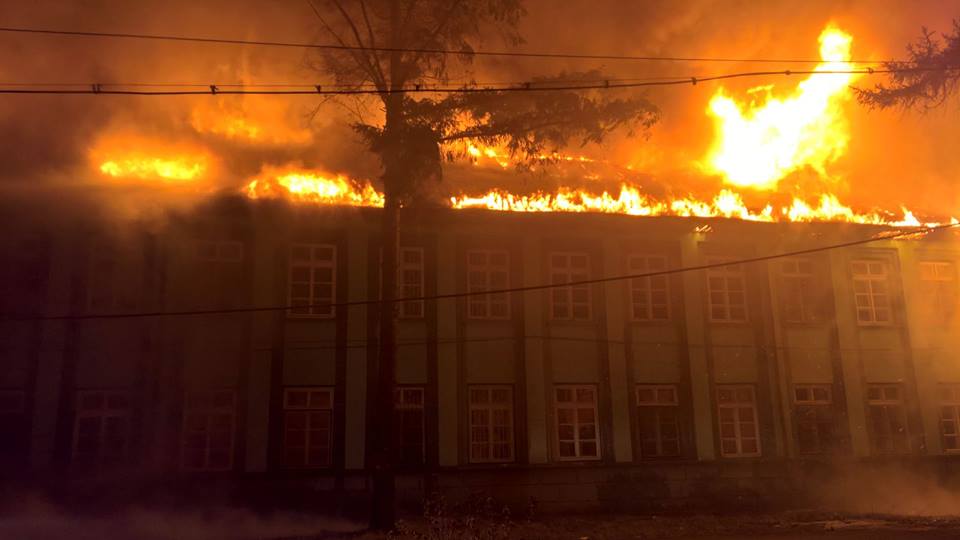Intervenție foarte dificilă, în plină desfășurare, a pompierilor Inspectoratului pentru Situații de Urgență „BANAT” al județului Timiș. Acțiunea vizează lichidarea unui incendiu izbucnit la un pavilion al spitalului din localitatea Gătaia.