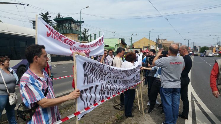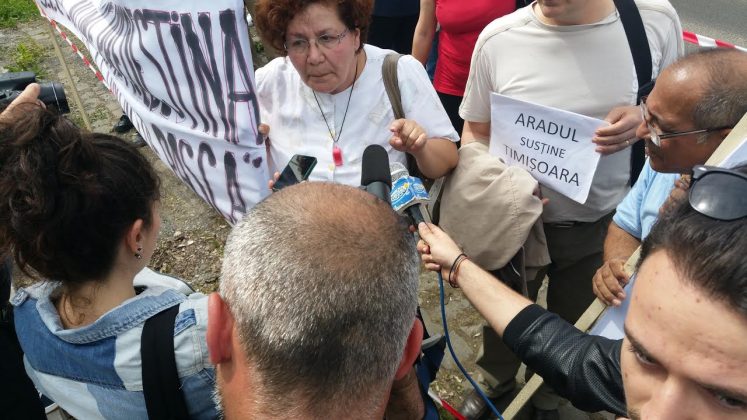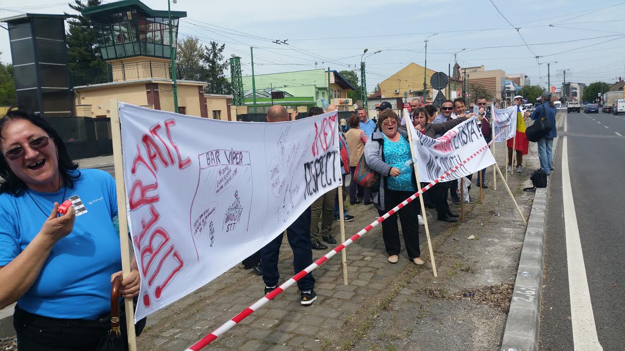 În semn de solidaritate, la protestul timișorenilor au venit membri ai sindicatului Armonia din Arad și Oradea.