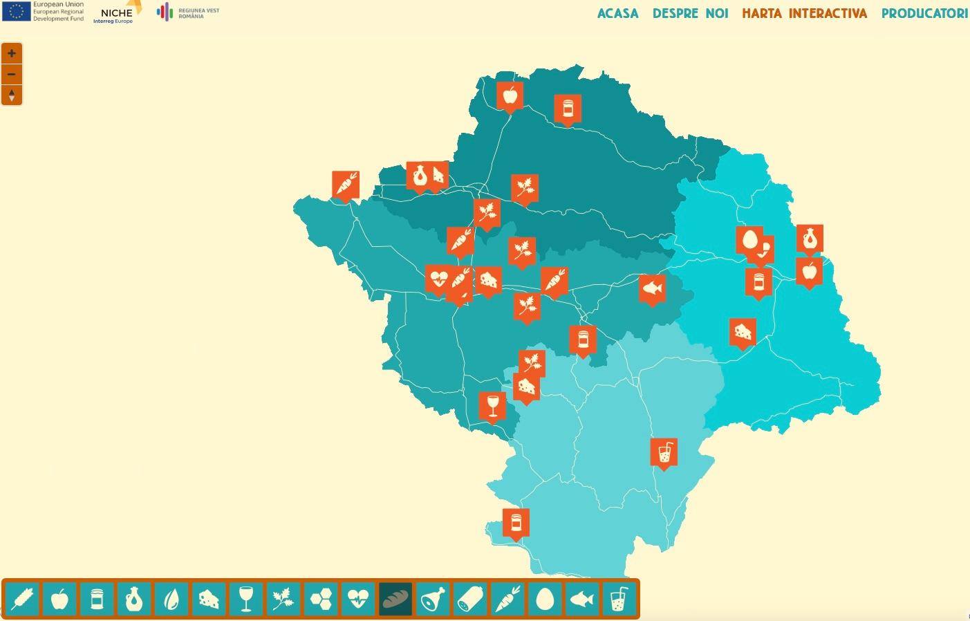 Arome proprii pune, de asemenea, la dispoziția vizitatorilor o hartă interactivă a producătorilor locali din Regiunea Vest, în funcție de tipurile de produse pe care le propun și aria geografică din care provin, cu informații complete privind trasabilitatea lor.
