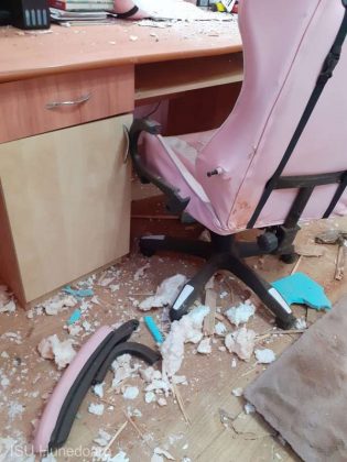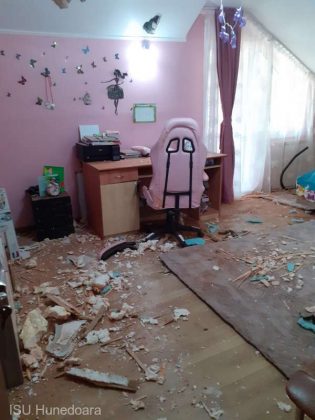„Din fericire, mama împreună cu cei doi copii minori nu se aflau la etajul clădirii în momentul impactului, ci la parterul locuinţei. Pagubele materiale sunt însemnate, fiind afectat acoperişul casei, plafonul unei camere şi mobilierul din aceasta”, a precizat ISU Hunedoara.