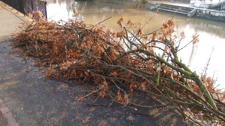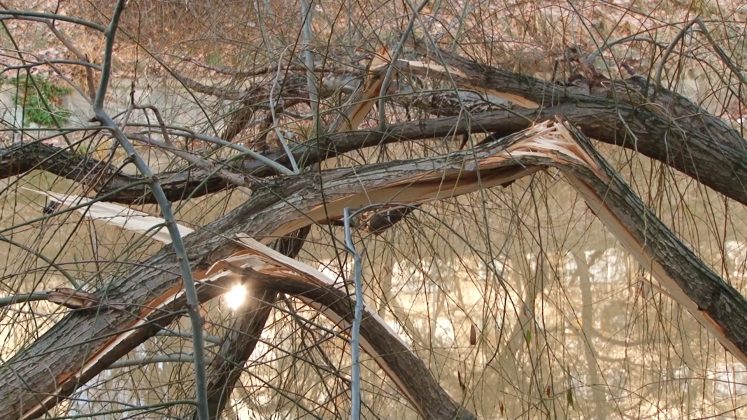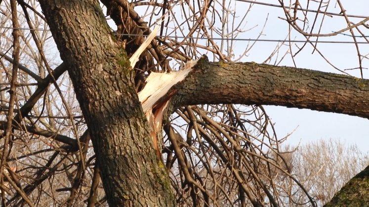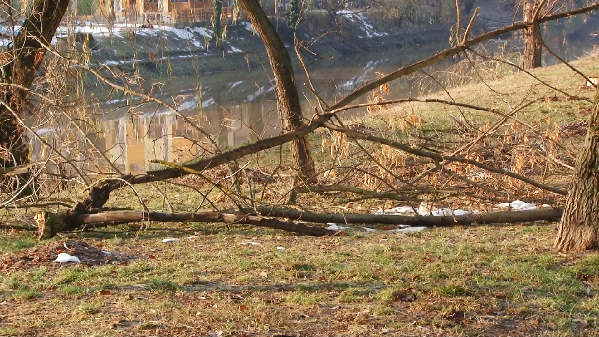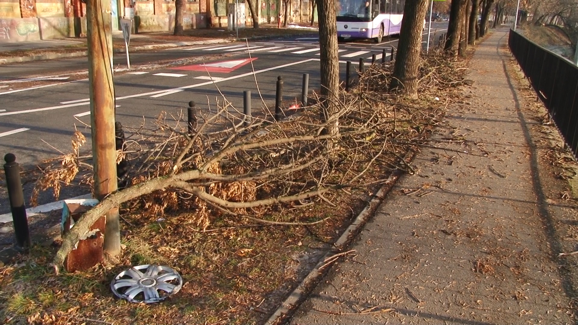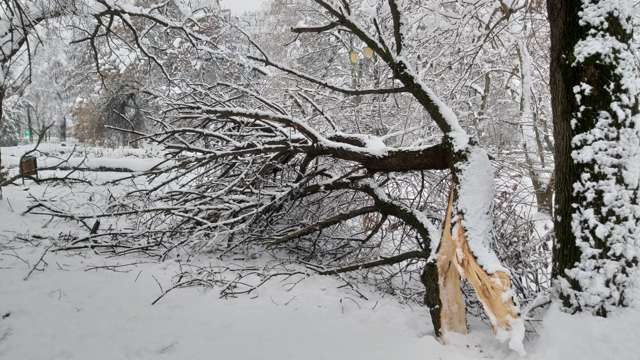 Deși partea carosabilă și trotuarele au devenit iar practicabile, urme destul de vizibile au rămas după zăpada abundentă. La tot pasul sunt crengi sau chiar copaci întregi ce au cedat sub greutatea zăpezii apoase.