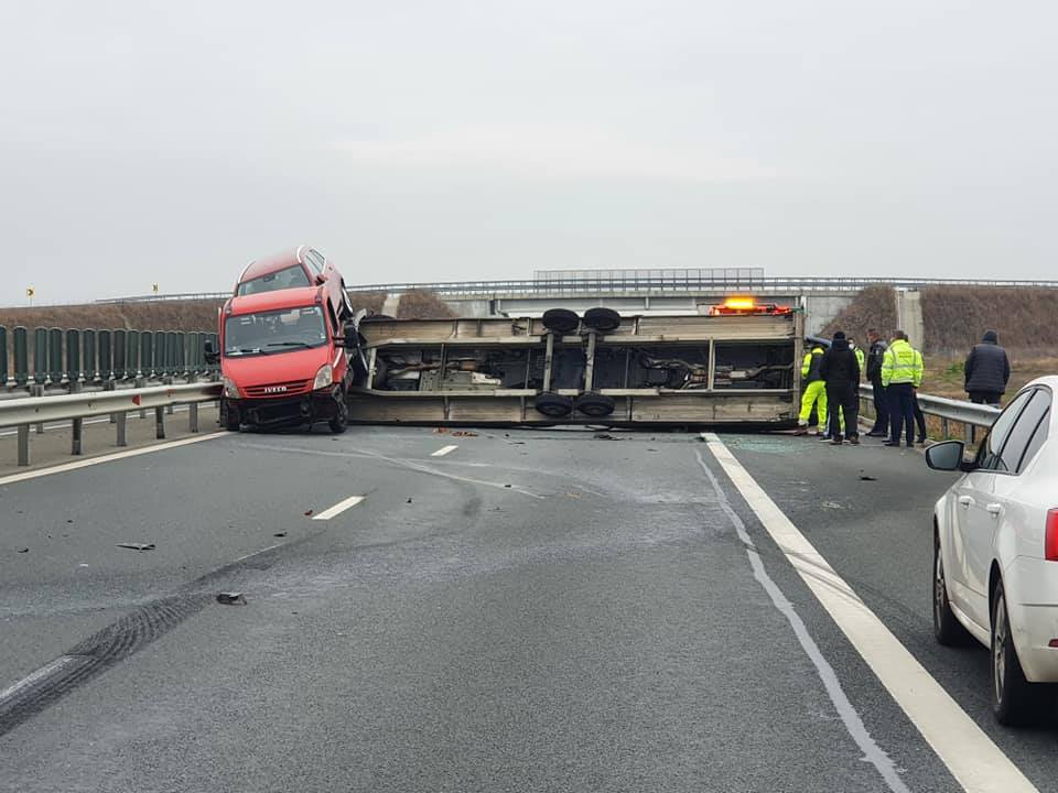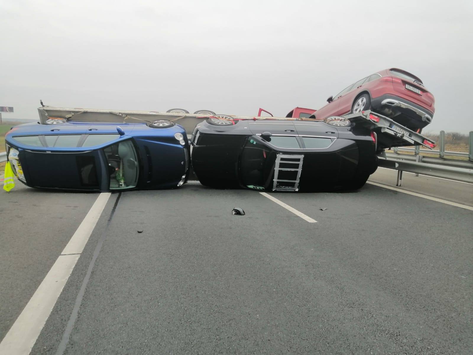 Autostrada A1 este blocată, pe sensul de mers de la Nădlac la Arad , în urma unui accident rutier. Un vehicul care transporta mașini s-a răsturnat de-a curmezișul pe șoseaua rapidă și a ocupat ambele benzi de circulație.
