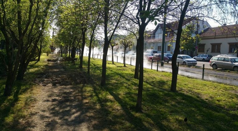 Calea Bogdăneştilor a arătat, joi, ca o imensă baie termală. Aburul a învăluit întreaga zonă şi ieşea chiar din pământ. Pe liniile de tramvai, în parc şi pe stradă aburul gros acoperea tot.
