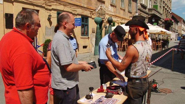 „Noi am primit aprobare, ca astăzi de la orele 14.00 să avem ateliere demonstrative aici pe Mărăşeşti, pe aleea pietonală, ne-am scos autorizaţie, am venit şi acum am înţeles că nu nu am avut un aviz de transport, am intrat cu maşina cu care am dus piatra de sculptat şi nicovala, au avut înţelegere şi nu ne-au amendat, însă au venit de mai multe ori să verifice numărul de autorizaţie (rău e să nu ai ţinere de minte ..n.r), buletin, datele . Oare cu ce am greşit?” îşi pune întrebarea unul dintre organizatori.