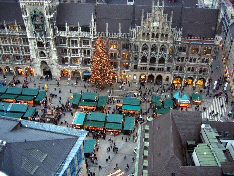Povestea pieței de Crăciun din München merge până în secolul al XV-lea, dar documentar este atestată pentru prima dată în 1642. La piețele de Crăciun se pune mare accent pe produsele specifice zonei, tradiționale, ce au devenit emblematice pentru această perioadă a anului: turta dulce, Stollenul, cârnații bavarezi (Weisswurst), migdale prăjite și caramelizate, castane coapte, fructe glazurate, vinul fiert aromat (Gluhwein), jucăriile și decorațiunile din lemn, sticlăria și cristalurile bavareze.