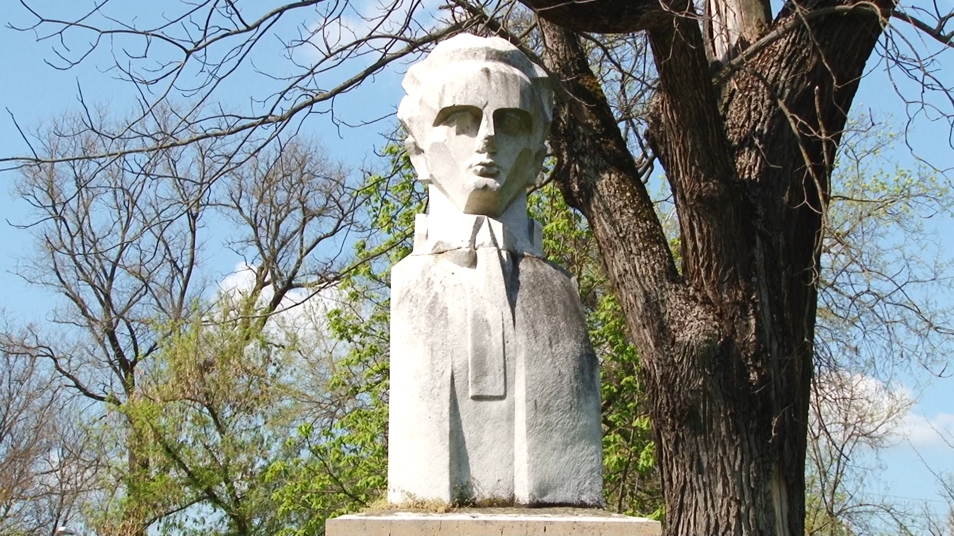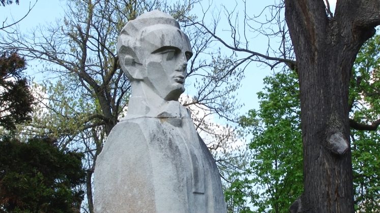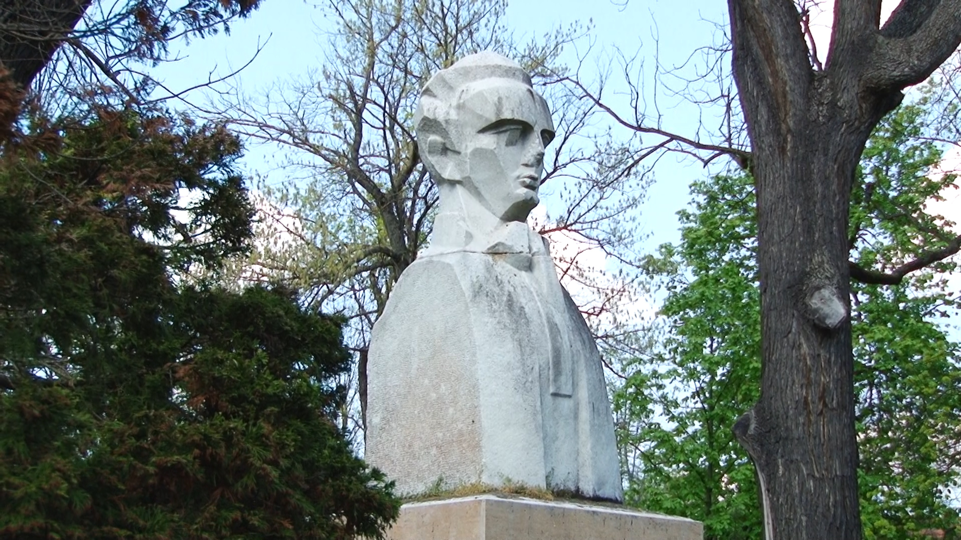 Acest bust a fost instalat în urmă cu decenii (din câte știu eu, acum vreo cincizeci de ani), într-o zonă mult mai centrală, în proximitatea actualei Filarmonici, fostul cinematograf Capitol, în apropierea grădinii de vară. Se vedea de la mare distanță și pe soclu exista o placă pe care se putea citi numele, anul nașterii, anul morții. Din păcate, după o anumită perioadă, cineva a decis mutarea acestui monument important al Timișoarei în acest parc, într-o zonă destul de marginală. Iar asta nu e tot. Între timp, soclul a fost vandalizat. S-a scris acolo „Regele Mihai”. Eu am prezentat și într-o emisiune la televiziune acest incident. Autoritățile au șters acea inscripție.