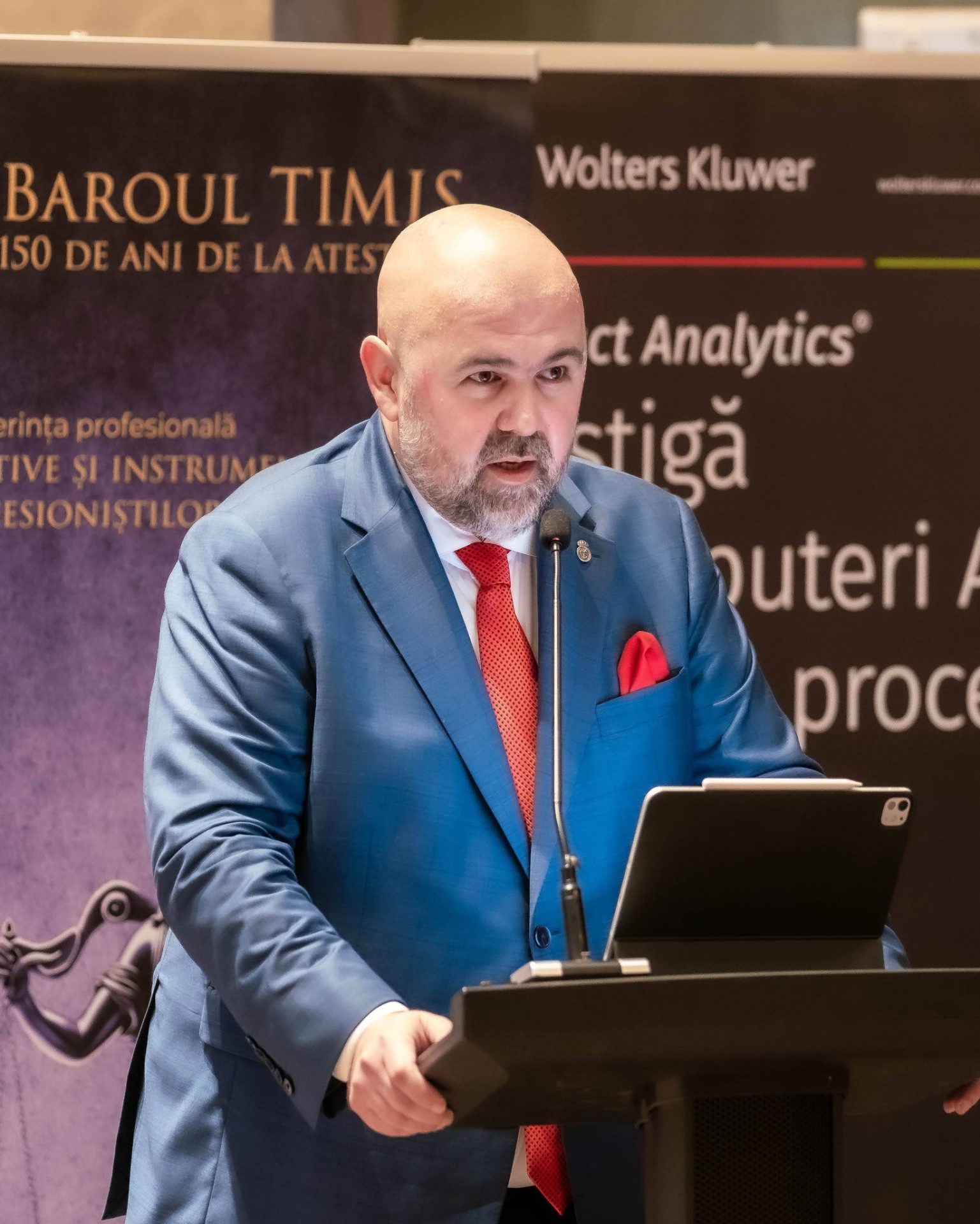Avocat Mihai Baco, Vicepreședinte al UNBR, a evidențiat impactul Baroului Timiș: Sunt onorat să fiu prezent la acest moment istoric. Ceea ce a realizat Sergiu Stănilă este remarcabil, ridicând standardele profesiei la un nivel deosebit de înalt. Prezența a 36 de decani în sală este o confirmare a acestui lucru.
