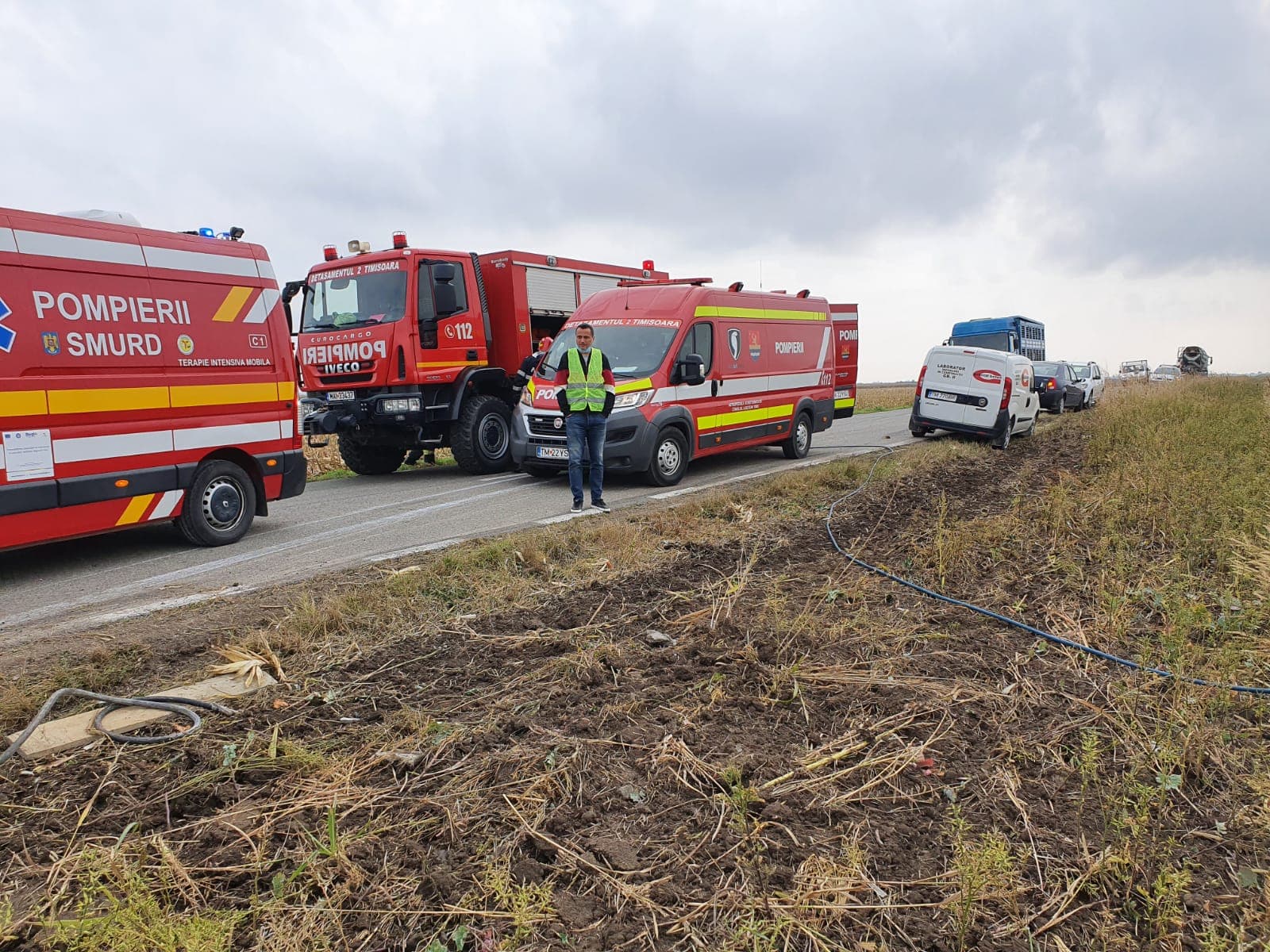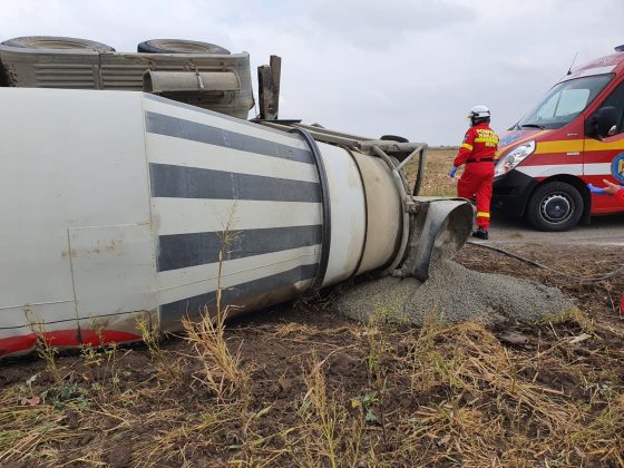 O autobetonieră s-a răsturnat, luni la prânz, pe drumul județean 593, în loclaitatea Peciu Nou. Circulția este blocată pe ambele sensuri.