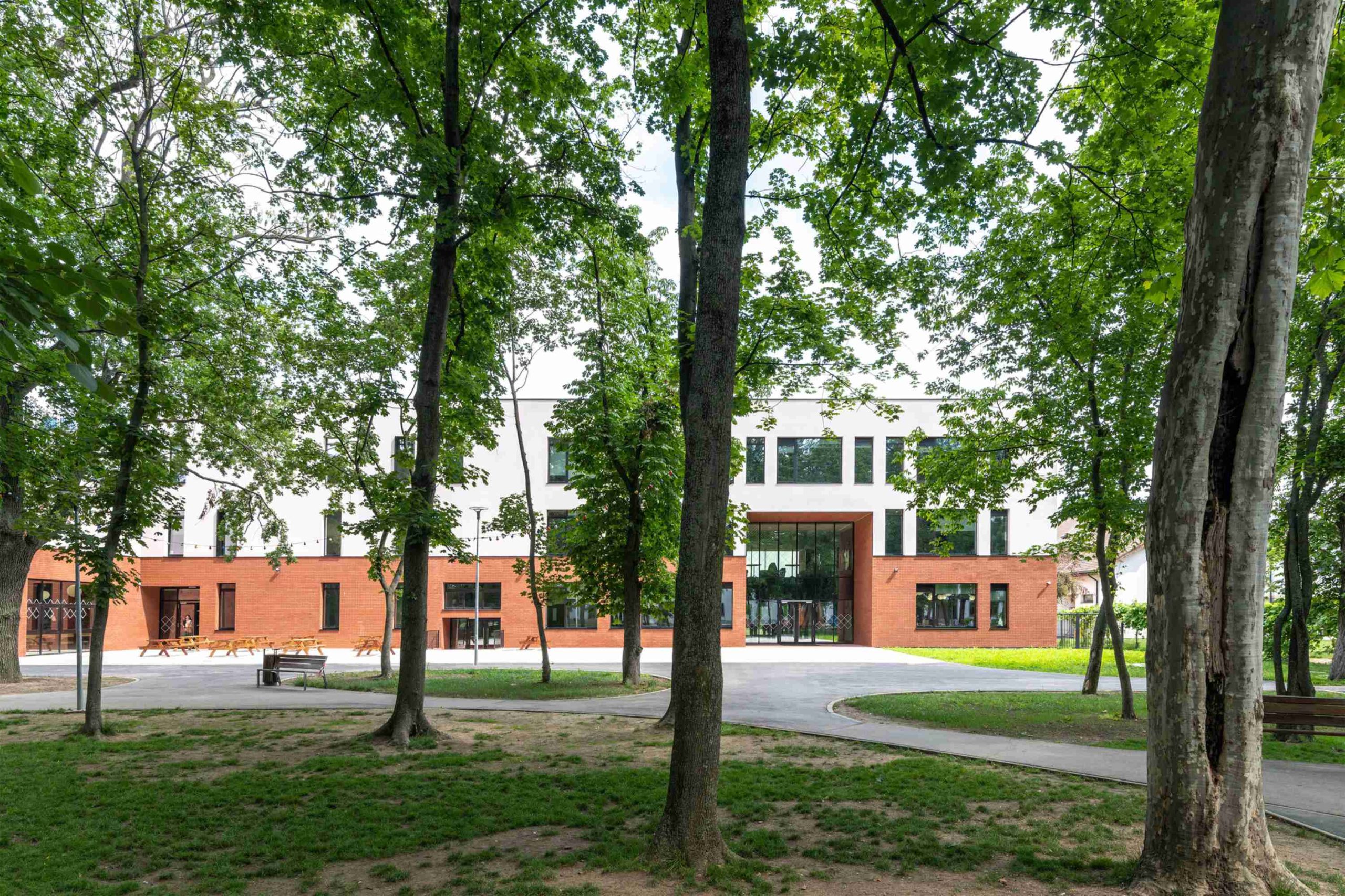 Noua clădire a liceului este gândită ca o poartă de acces în ansamblul de învățământ, scuarul cu copacii săi maturi constituind elementul de atmosferă și ambient cel mai important, putând fi perceput din interiorul clădirii liceului atât la parter cât și de la etajul 1 – „piano nobile”.