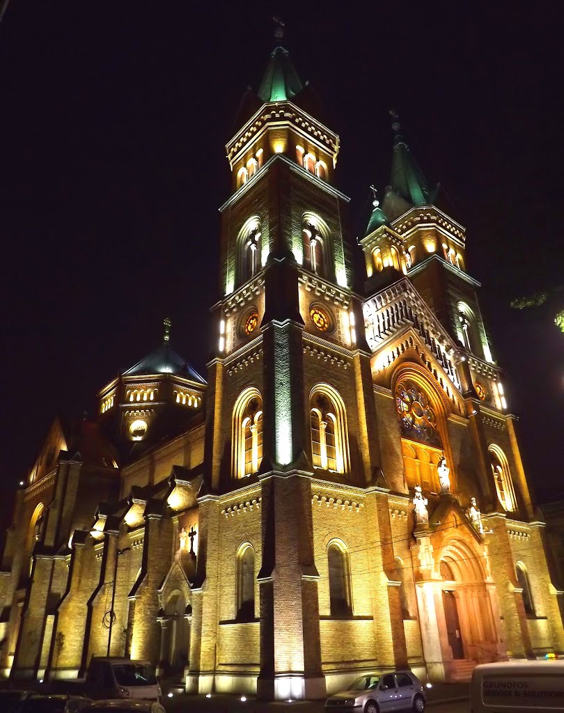 În Fabric, în 1896 era cel mai potrivit moment de a cere construirea unei noi biserici. Primarul din acea epocă, Carol Telbisz, a susţinut necesitatea construirii bisericii. În lungul său mandat, oraşul a cunoscut o perioadă de modernizare şi înflorire accelerată din punct de vedere cultural, industrial, arhitectural, al educaţiei şi religiei, devenind unul dintre cele mai importante centre ale Ungariei de atunci. A fost găsit arhitectul Ludwig von Ybl (Lajos), ce și-a asumat proiectarea edificiului. Poate a contat și renumele celebrului său înaintaș Miklos Ybl cu care a lucrat la începuturile carierei. Constructorul ales a fost antreprenorul Kremer Jozsef. Piatra de temelie a fost depusă, în cadrul unei ceremonii, în data de 16 iunie 1896. Lucrările au mers destul de alert. Peste patru ani, în 1900, a fost terminată biserica. Dar din diverse motive a fost amânată darea în folosință până la sfinţirea din 13 octombrie 1901. Slujba festivă a fost celebrată de către episcolul Dessewffy Sándor cel demn de amintire pentru faptele sale. La această dată se celebrează în fiecare an hramul lăcașului.