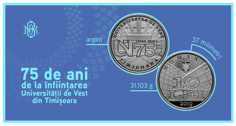 Banca Naţională a României va lansa în circuitul numismatic o monedă din argint cu tema 75 de ani de la înfiinţarea Universităţii de Vest din Timişoara.