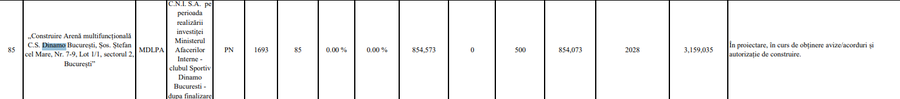 - Noul Stadion Dinamo – termen finalizare 2028, poziția 85 pe listă